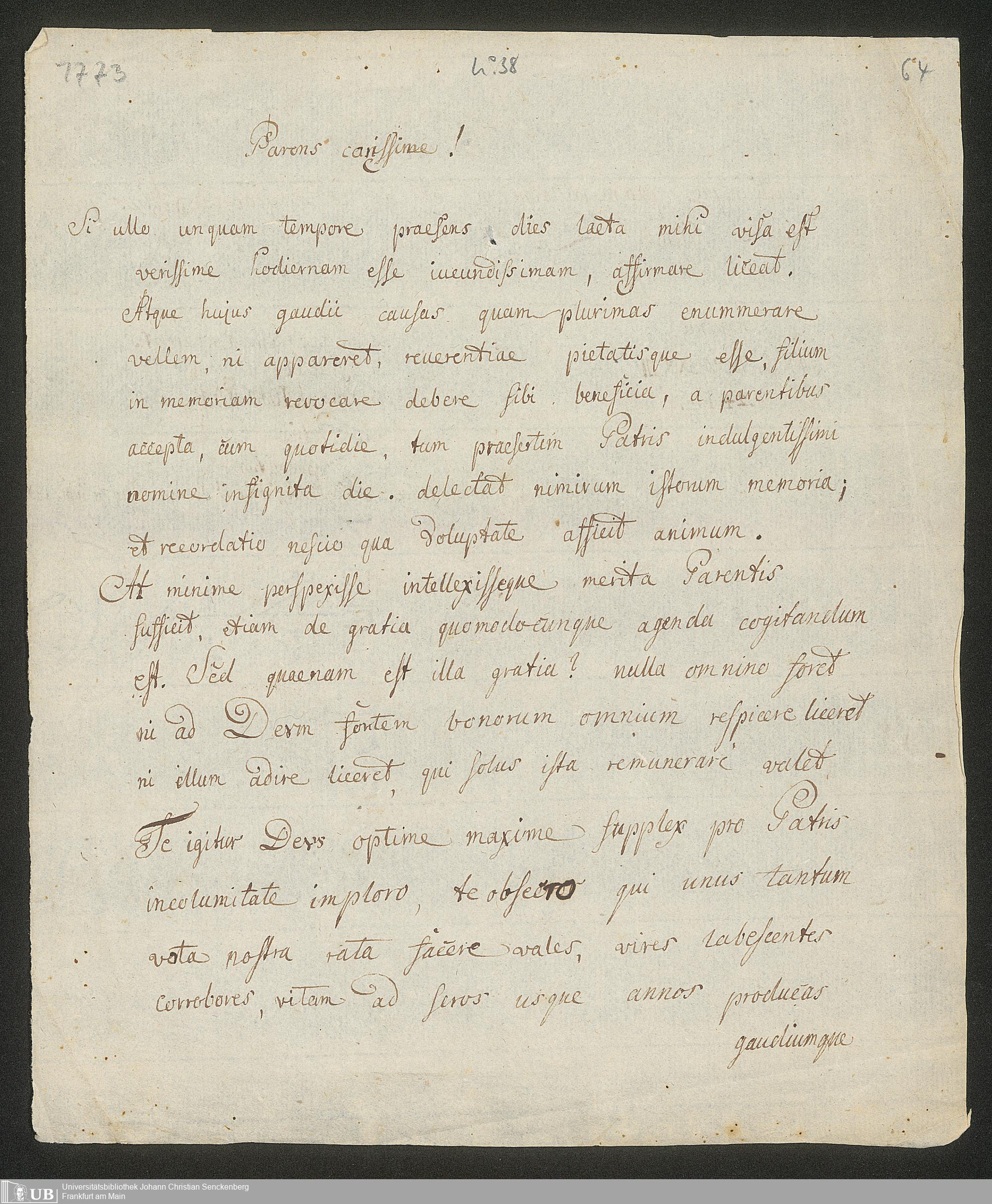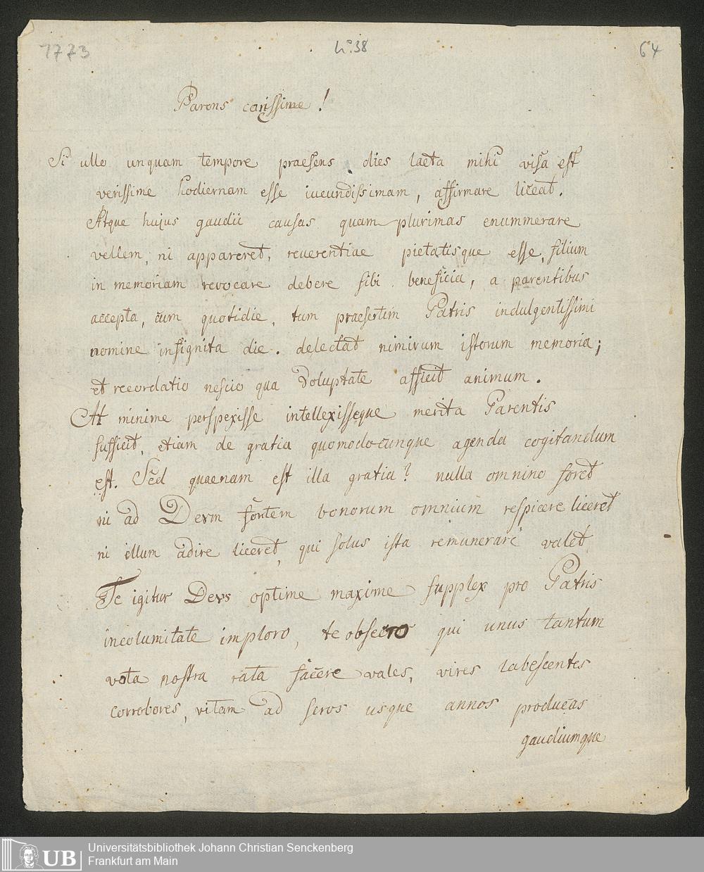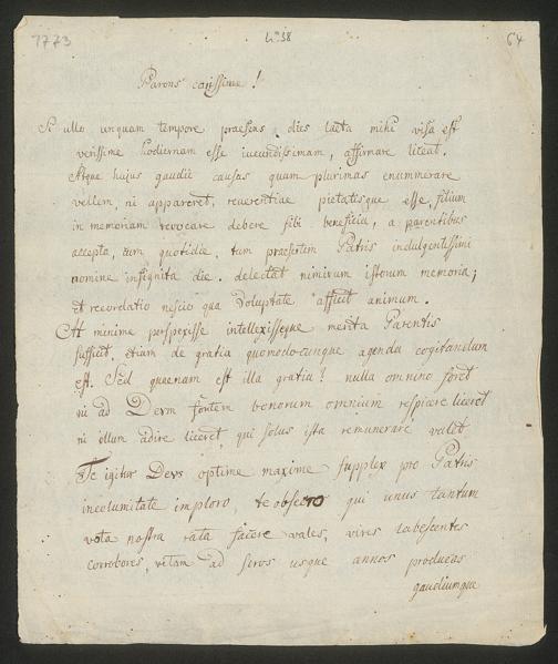 Ms. Ff. S. Th. v. Soemmerring 7 B - 43 Neujahrs-, Weihnachts-, Geburtstags- und Namenstagsgratulationen in Versen und in Prosa an beide Eltern, besonders an den Vater gerichtet. 1 Neujahrsschreiben der Mutter.