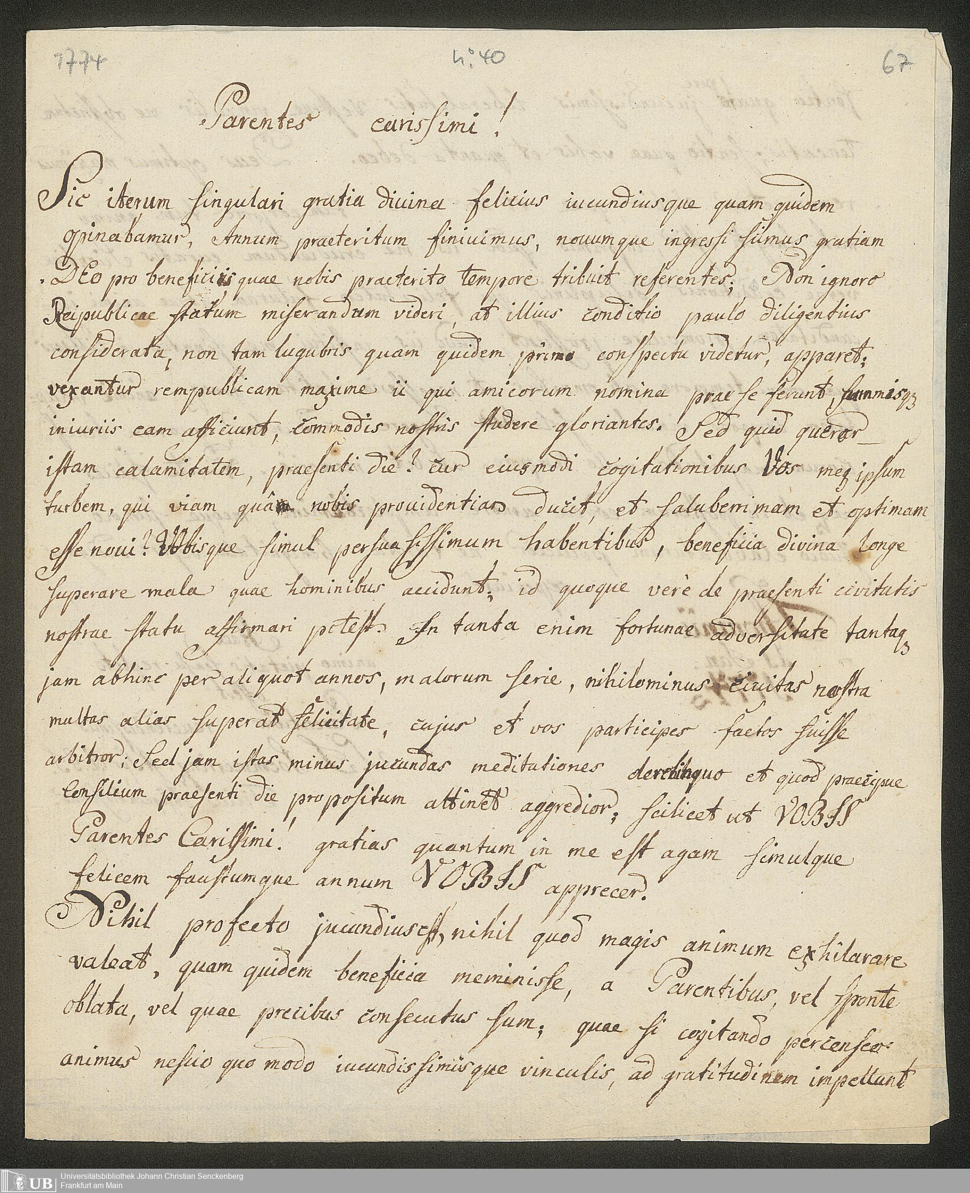 Ms. Ff. S. Th. v. Soemmerring 7 B - 43 Neujahrs-, Weihnachts-, Geburtstags- und Namenstagsgratulationen in Versen und in Prosa an beide Eltern, besonders an den Vater gerichtet. 1 Neujahrsschreiben der Mutter.