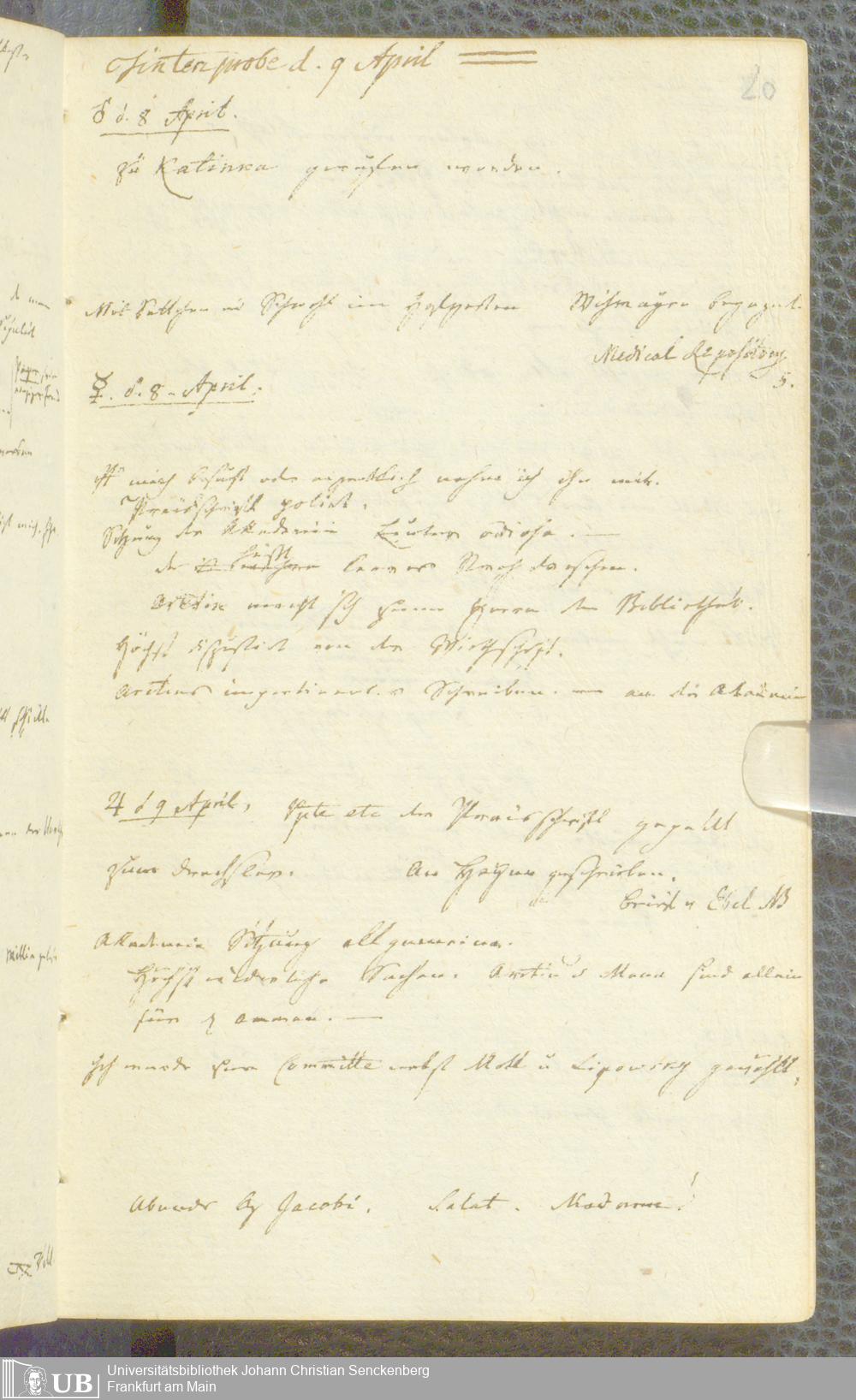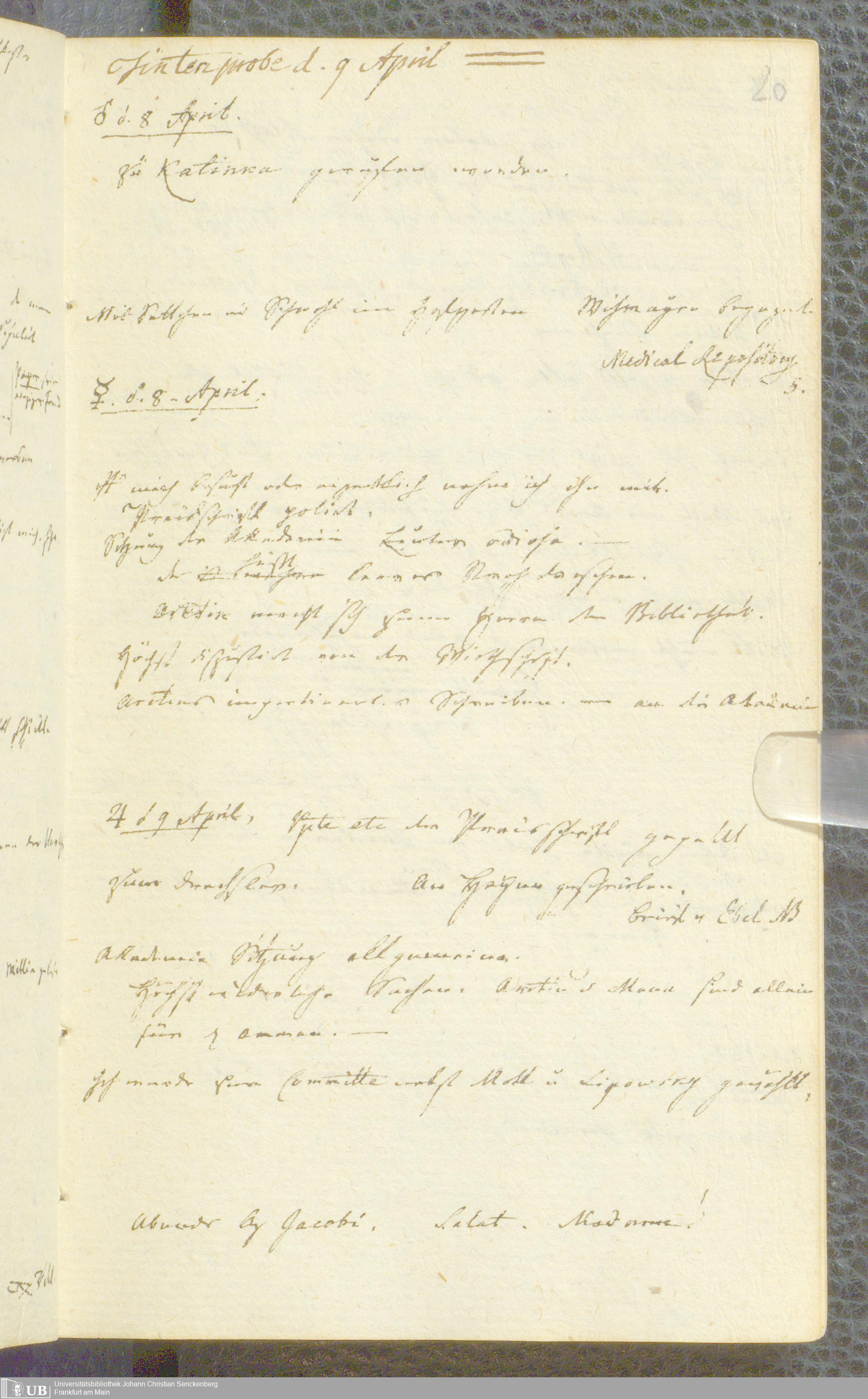 Ms. Ff. S. Th. v. Soemmerring 1 Bd. 1806/07 - Tagebücher