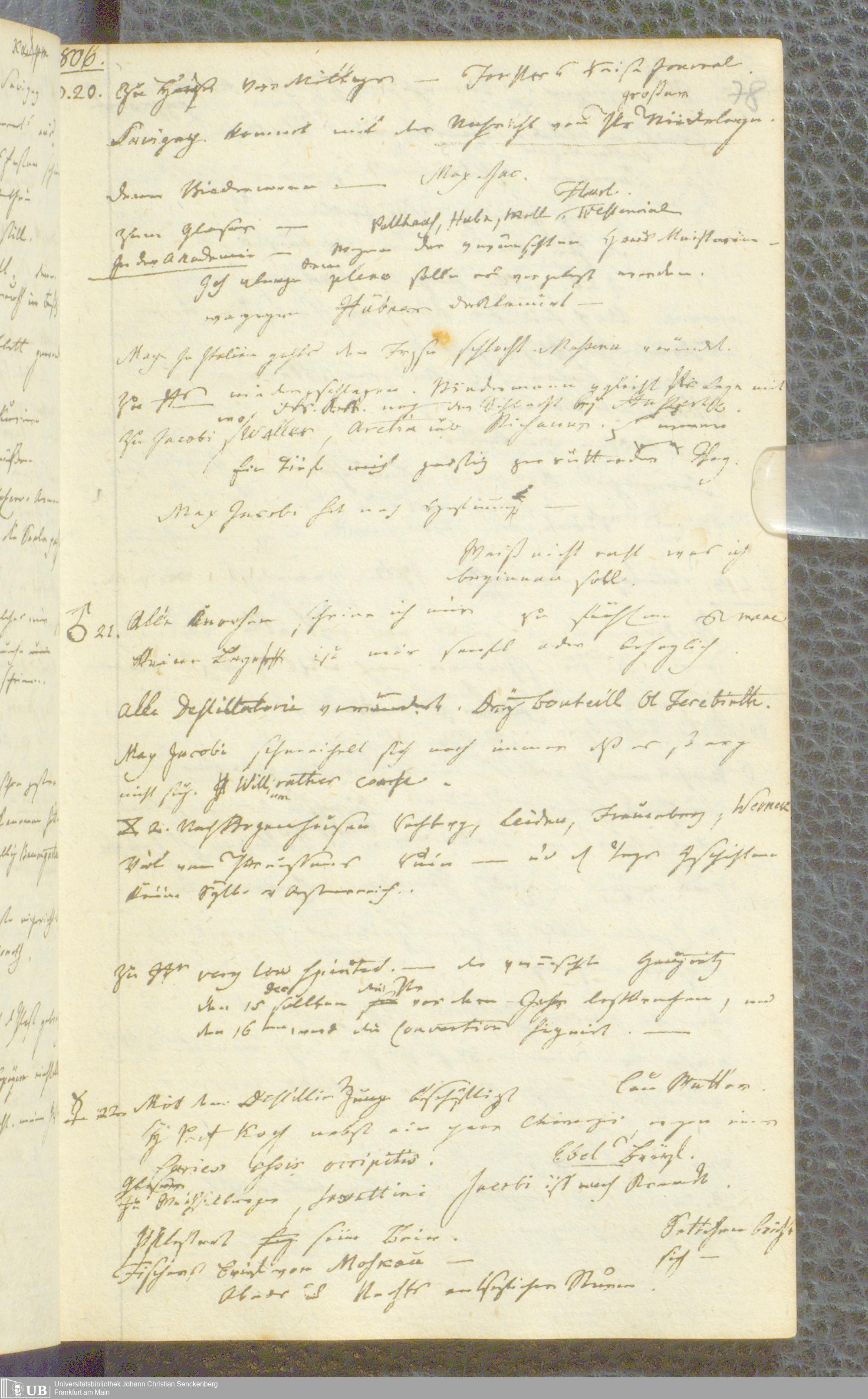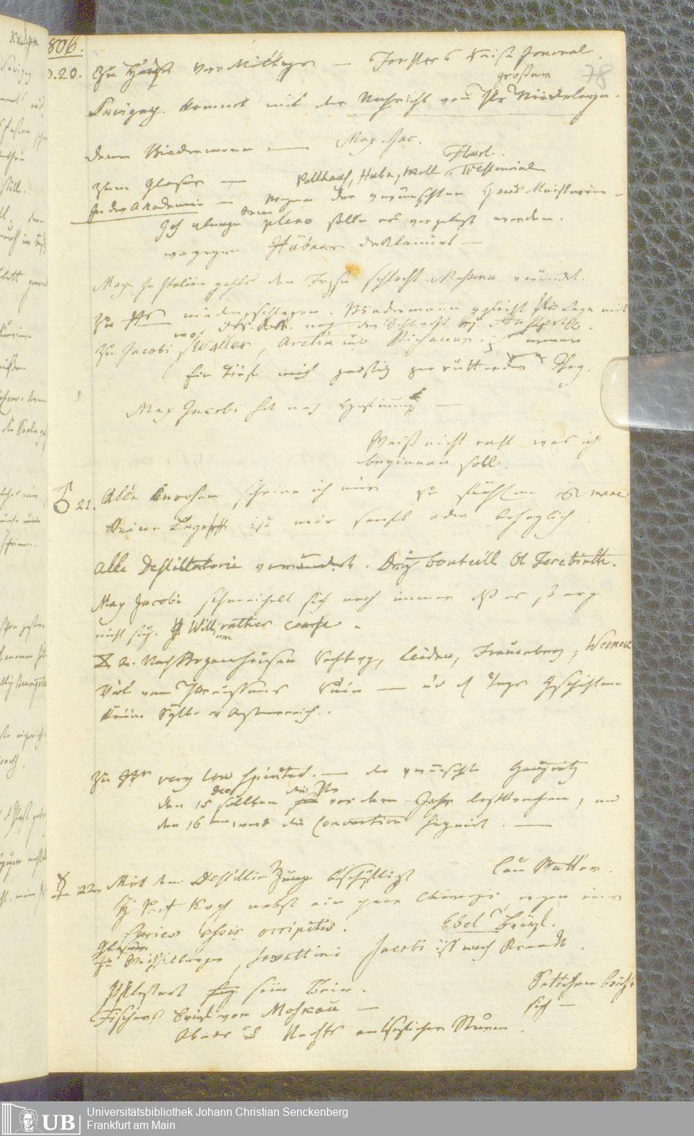 Ms. Ff. S. Th. v. Soemmerring 1 Bd. 1806/07 - Tagebücher