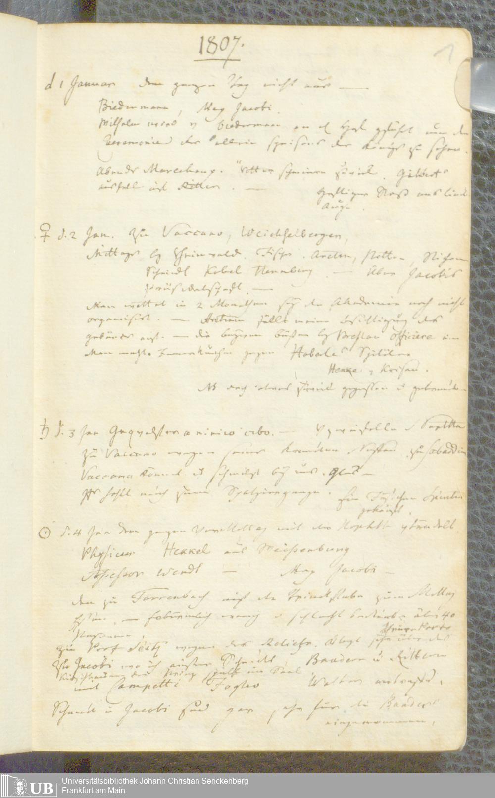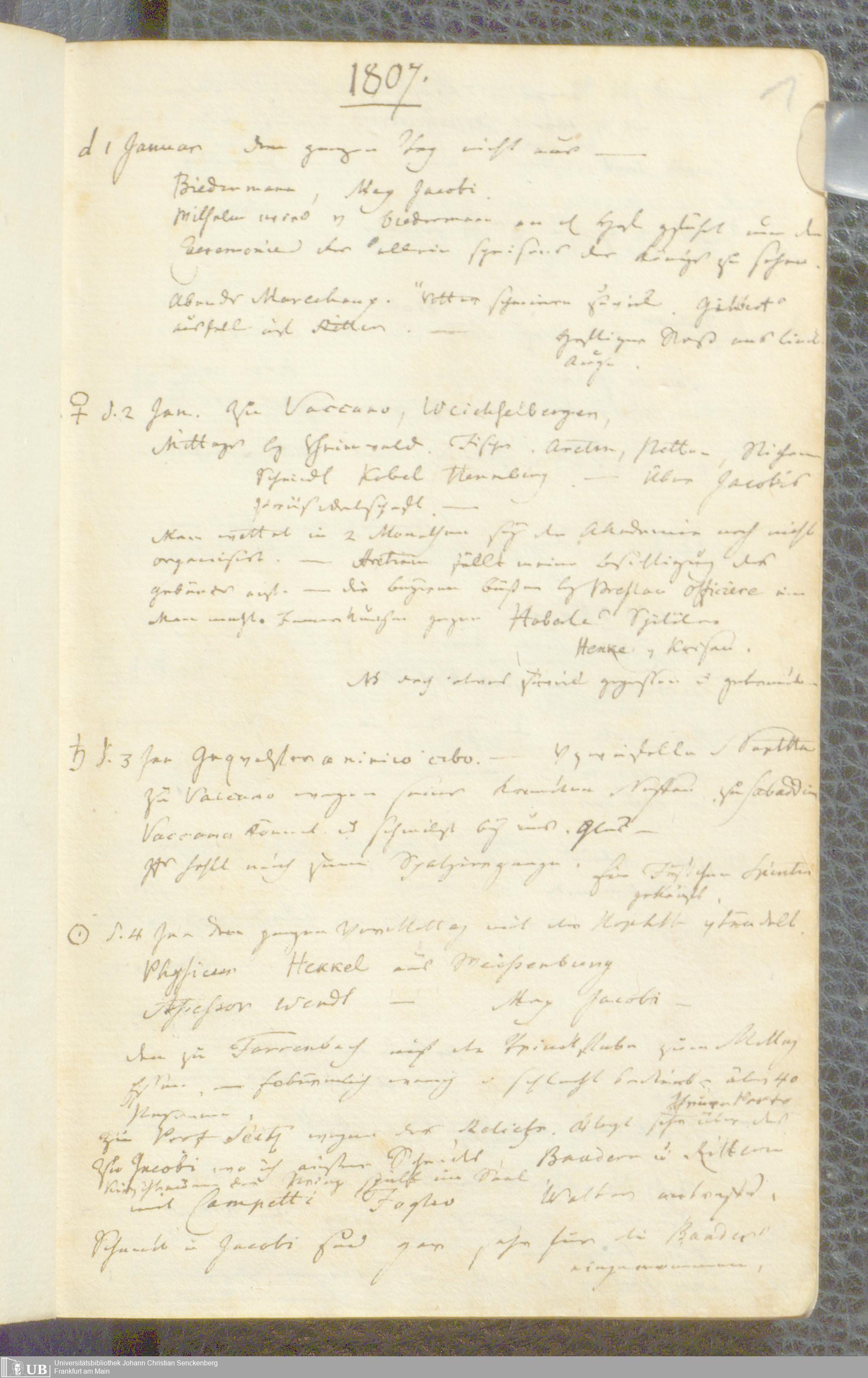 Ms. Ff. S. Th. v. Soemmerring 1 Bd. 1807 - Tagebücher