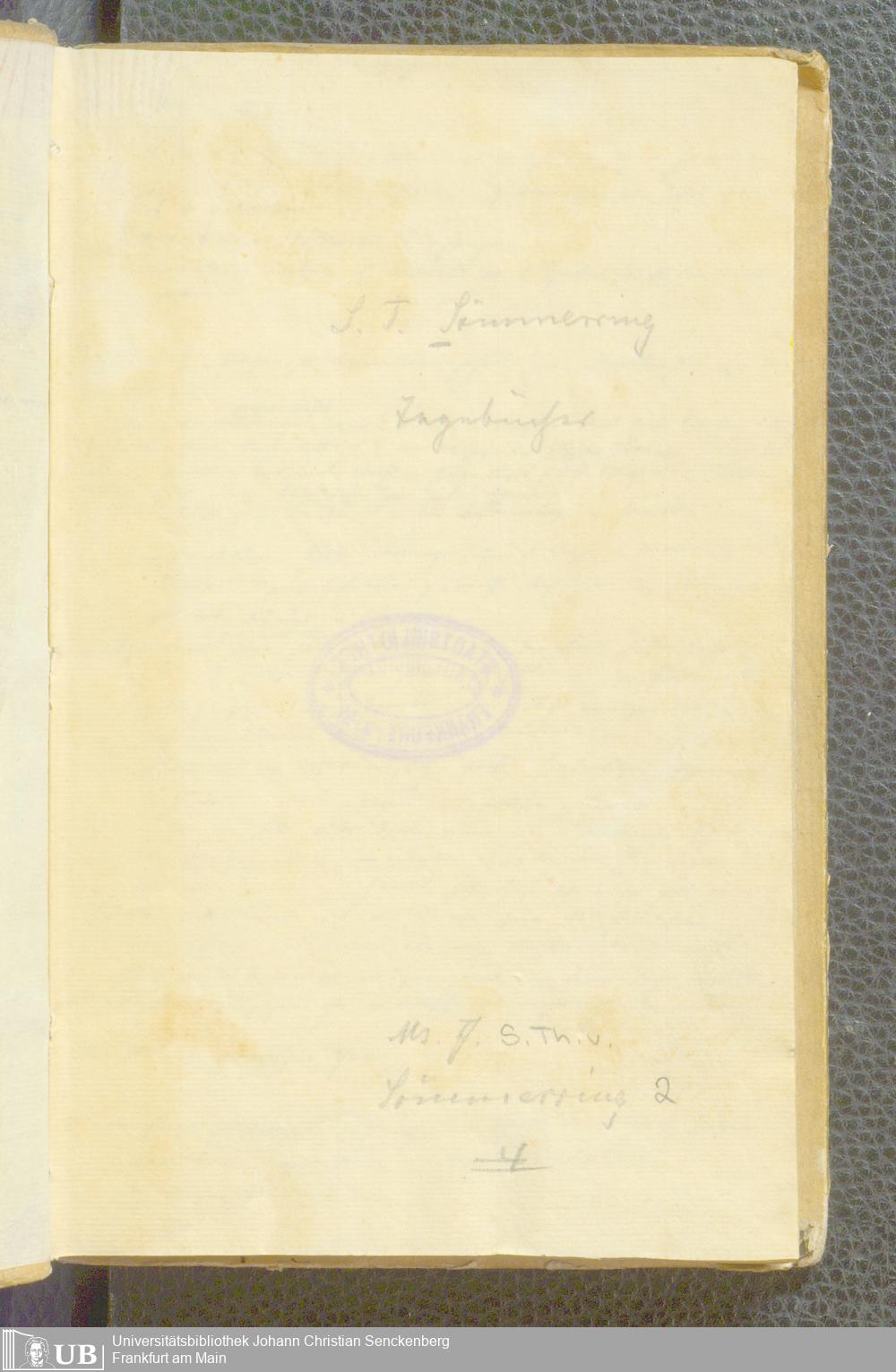 Ms. Ff. S. Th. v. Soemmerring 2 Bd. 1809/10 - Tagebücher