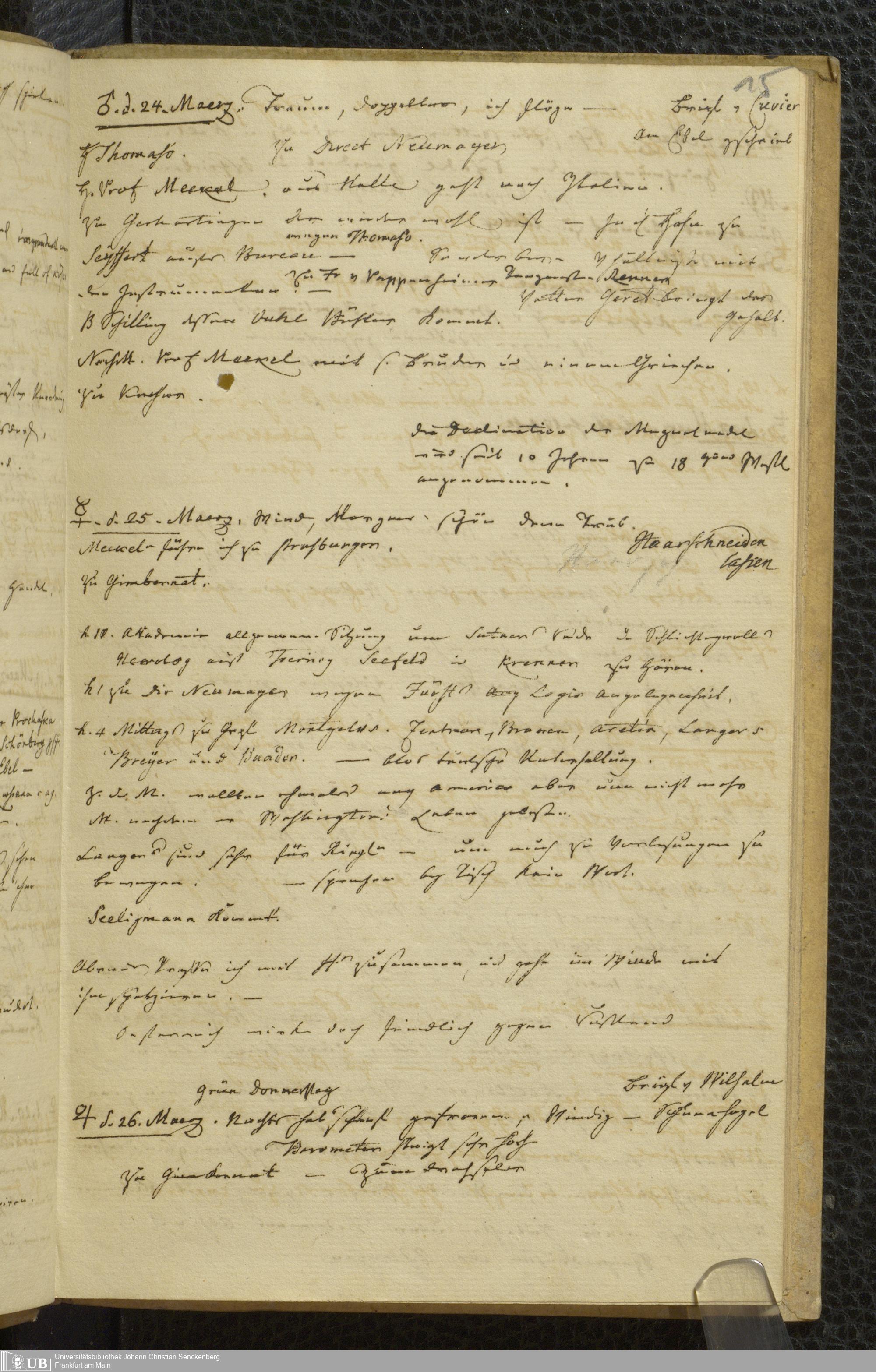 Ms. Ff. S. Th. v. Soemmerring 2 Bd. 1812/13 - Tagebücher
