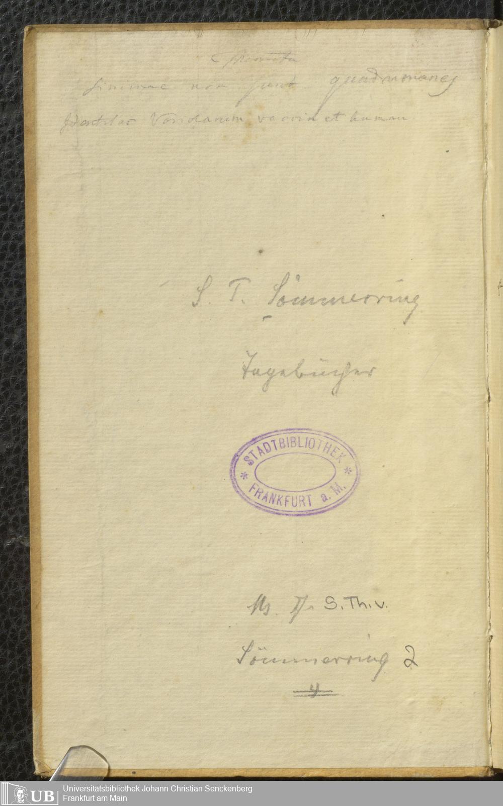 Ms. Ff. S. Th. v. Soemmerring 2 Bd. 1813/14 - Tagebücher