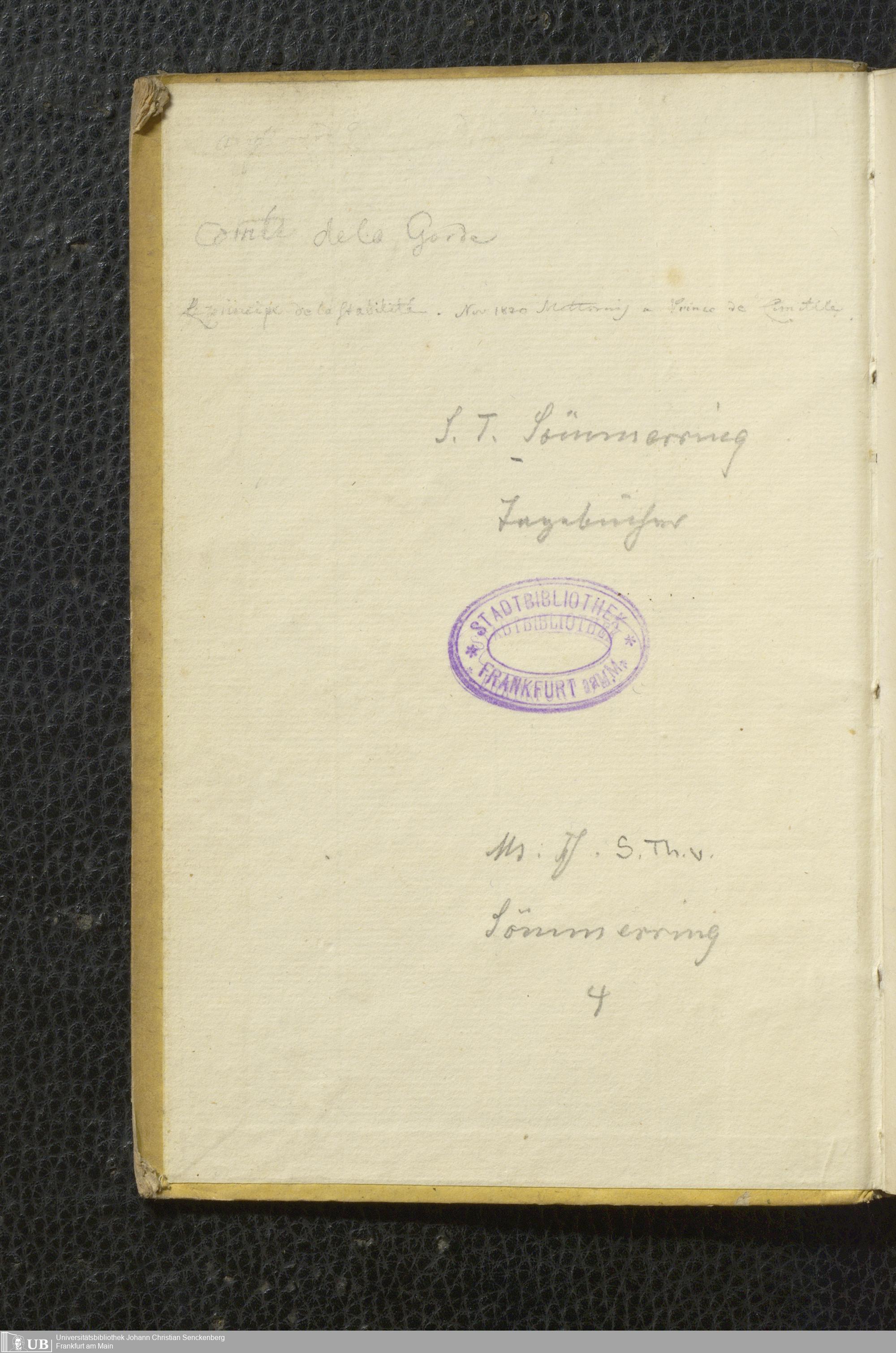 Ms. Ff. S. Th. v. Soemmerring 4 Bd. 1820 - Tagebücher