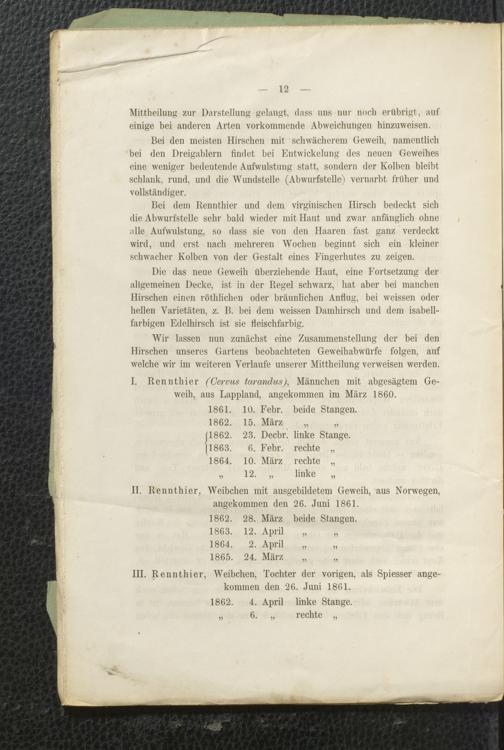 Ms. Ff. S. Th. v. Soemmerring 13 - Beobachtungen über Wechsel und Wachsthum des Geweihes des Edelhirsches. Nebst einem Anhang: Ueber Geweihbildung von Dr. Max Schmidt