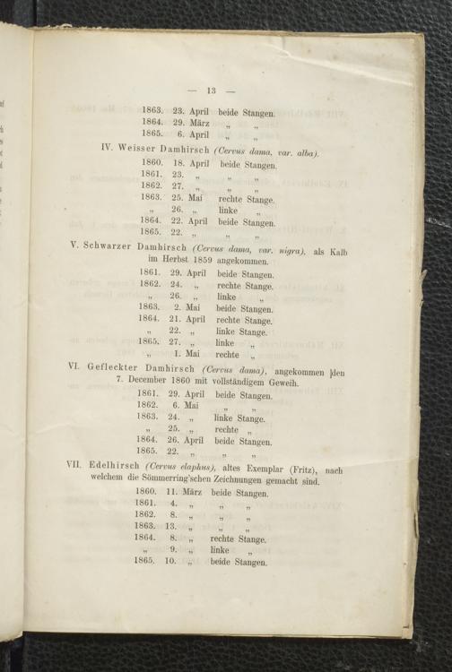 Ms. Ff. S. Th. v. Soemmerring 13 - Beobachtungen über Wechsel und Wachsthum des Geweihes des Edelhirsches. Nebst einem Anhang: Ueber Geweihbildung von Dr. Max Schmidt