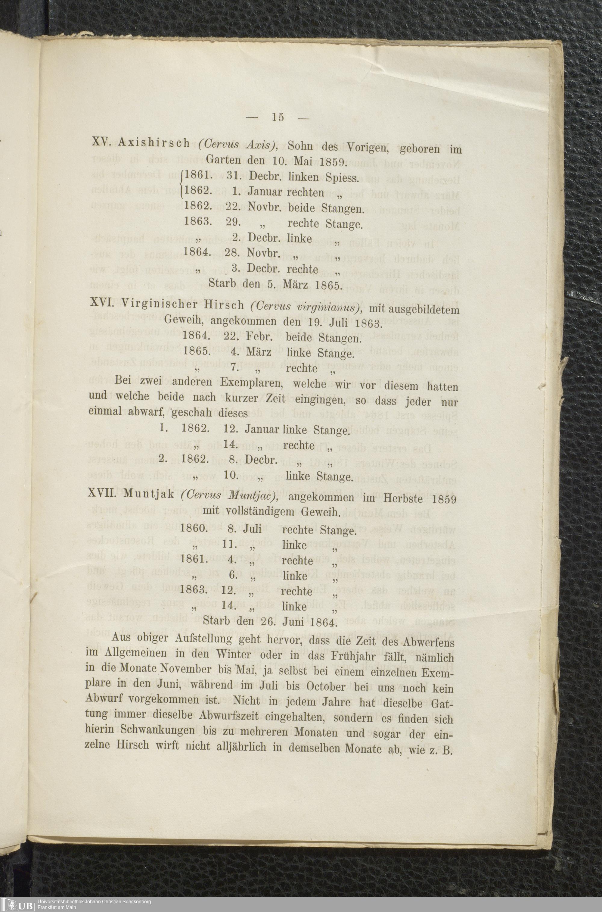 Ms. Ff. S. Th. v. Soemmerring 13 - Beobachtungen über Wechsel und Wachsthum des Geweihes des Edelhirsches. Nebst einem Anhang: Ueber Geweihbildung von Dr. Max Schmidt