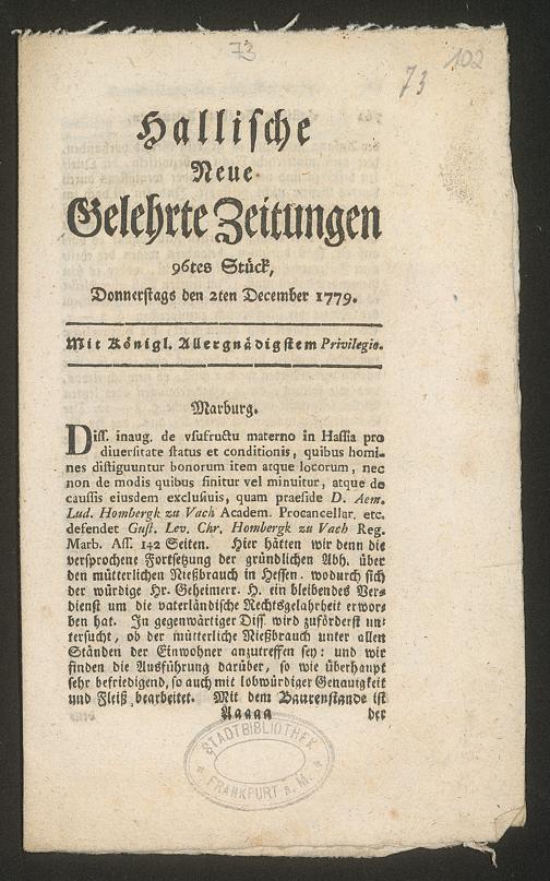 Nachlass Johann Christian Senckenberg