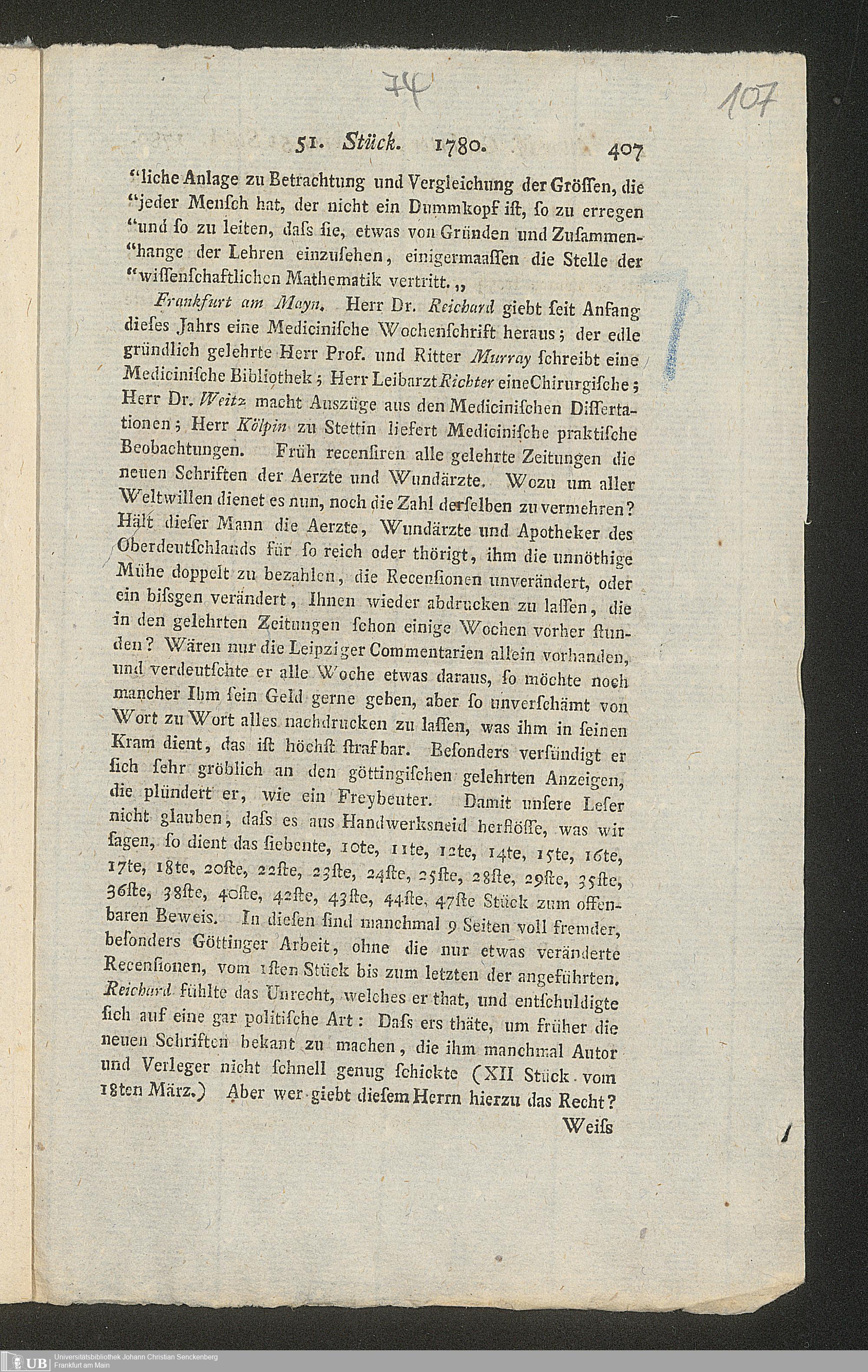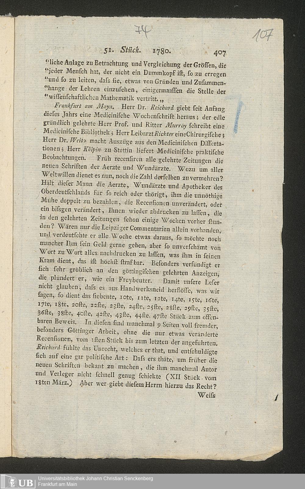 Nachlass Johann Christian Senckenberg