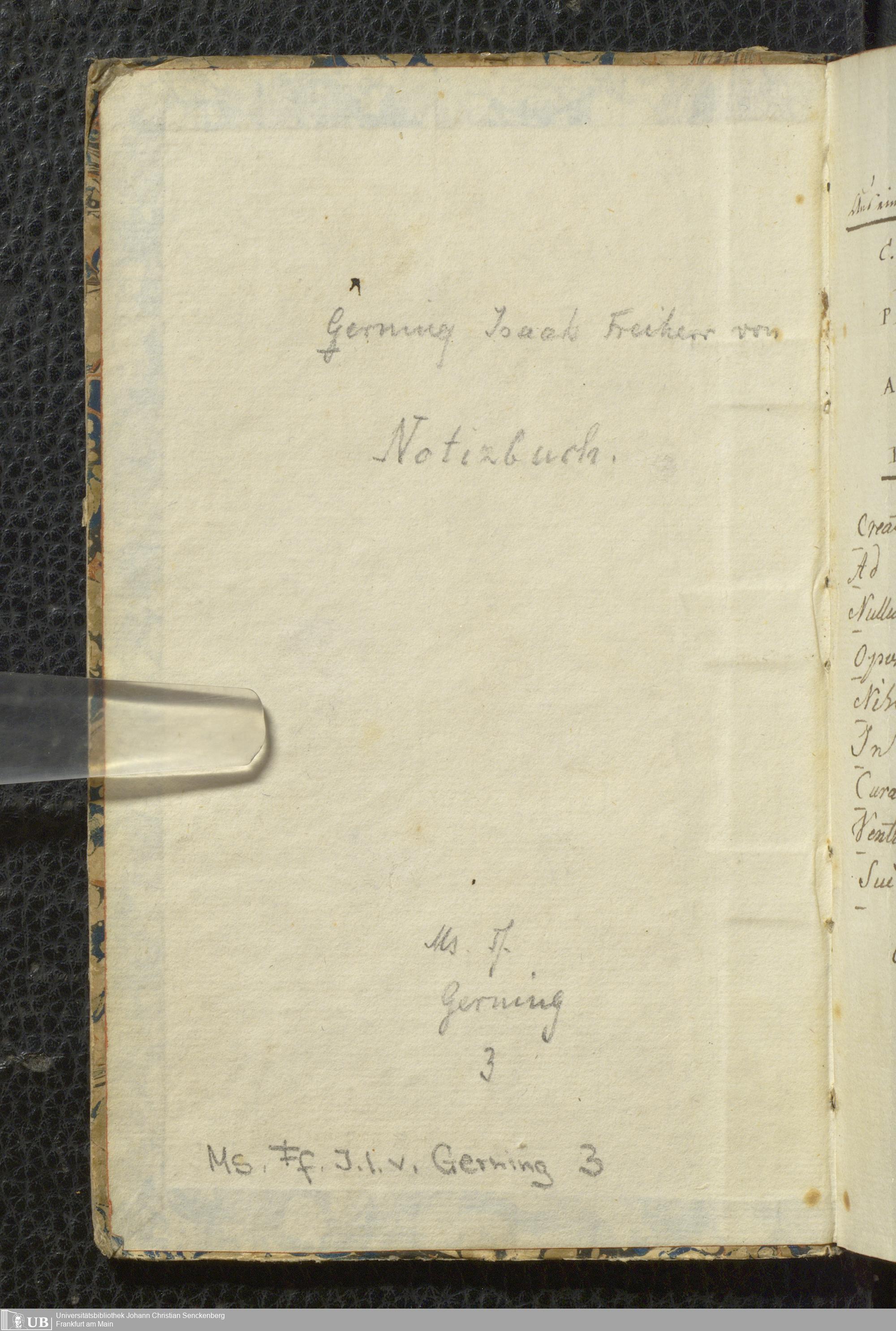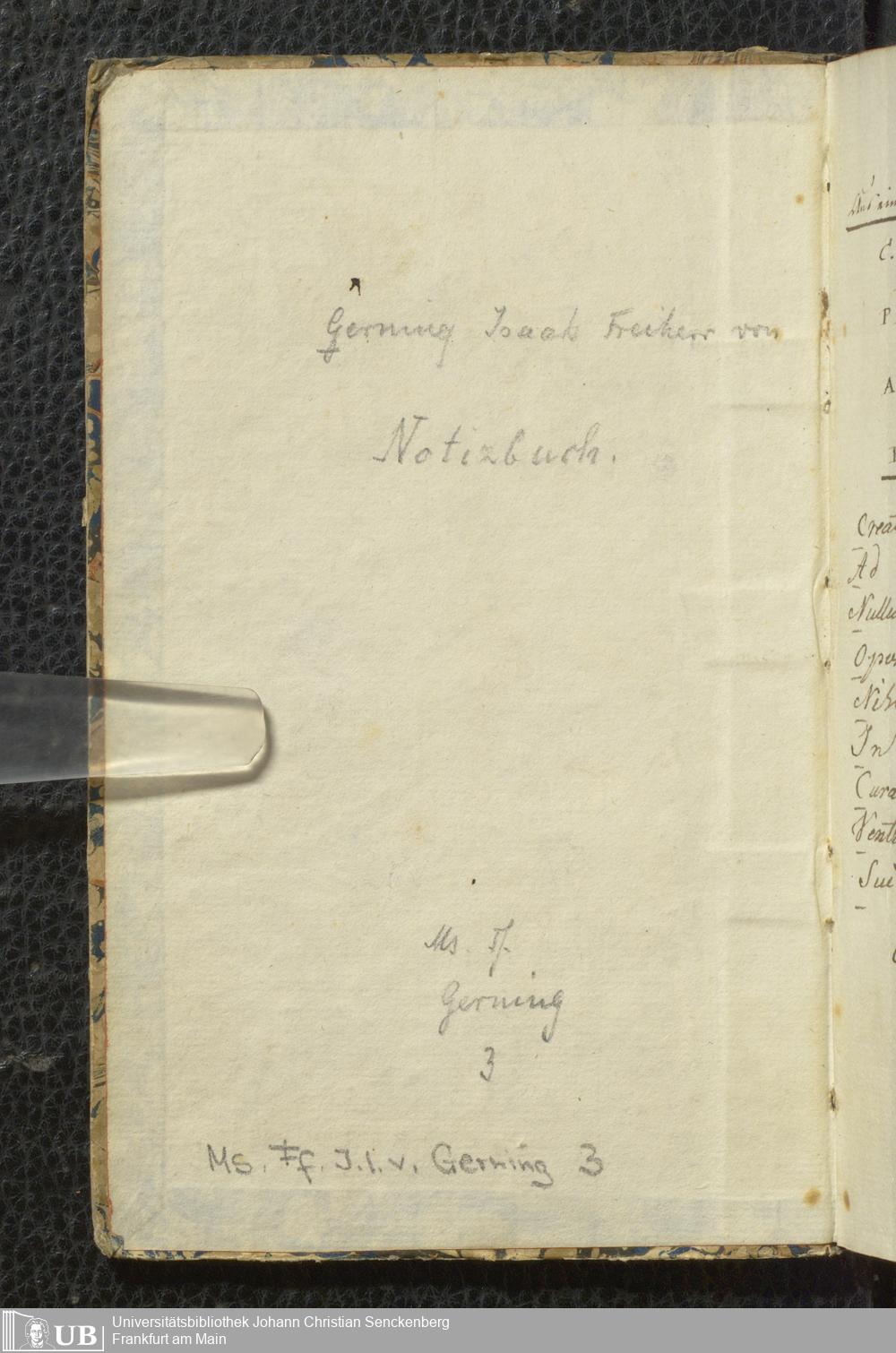 Ms. Ff. J. I. v. Gerning 3 - Notizbuch