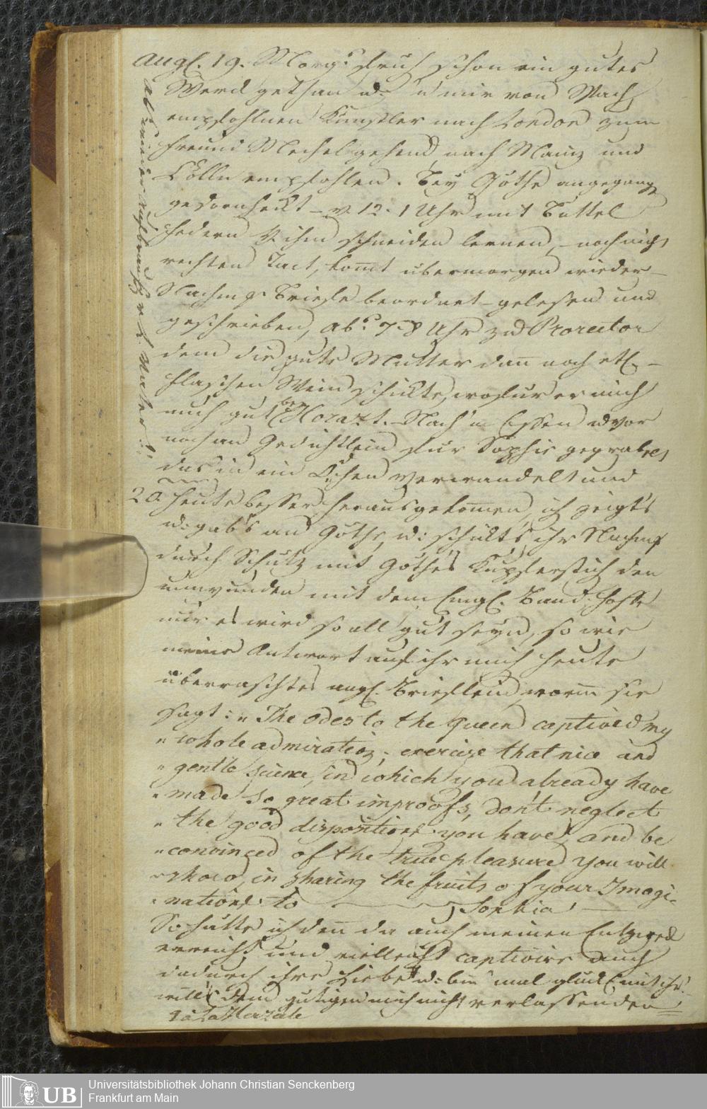 Ms. Ff. J. I. v. Gerning 1 Bd. 2 - Eigenhändiges Tagebuch des Frankfurter Dichters und Schriftstellers Johann Isaac v. Gerning