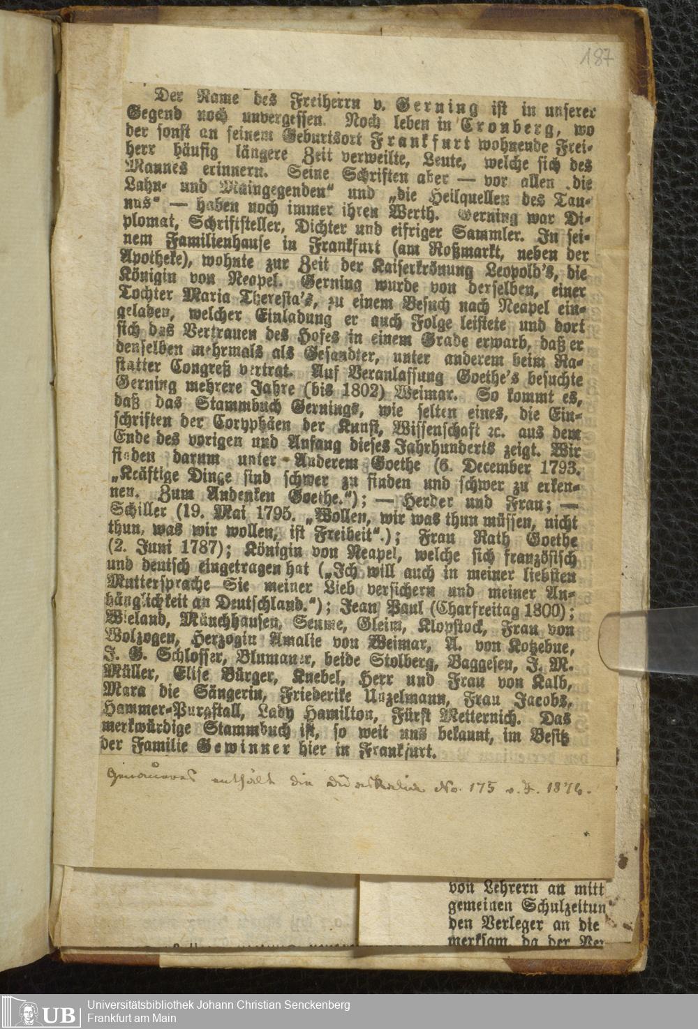 Ms. Ff. J. I. v. Gerning 1 Bd. 2 - Eigenhändiges Tagebuch des Frankfurter Dichters und Schriftstellers Johann Isaac v. Gerning