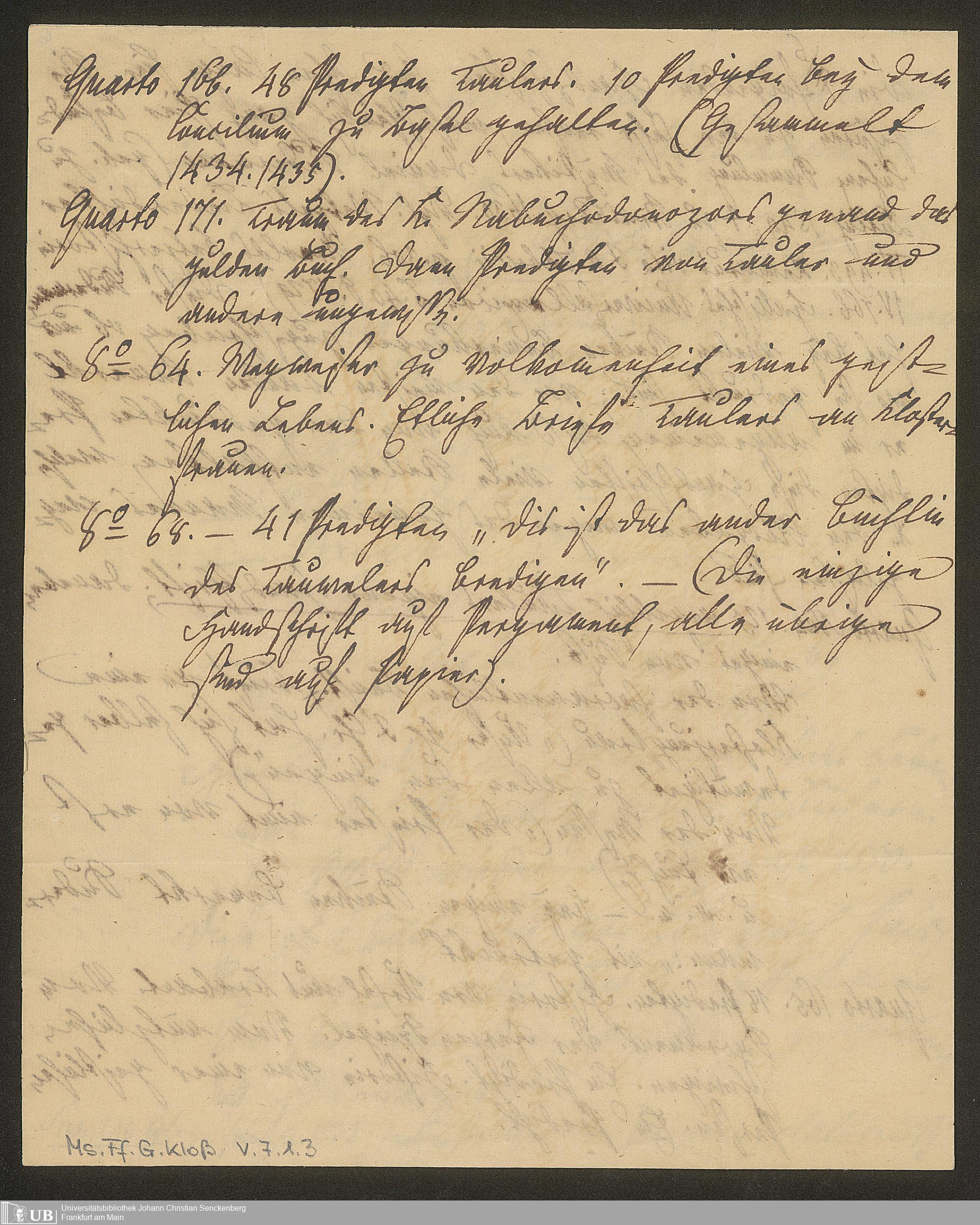 Ms. Ff. G. Kloß V.7.1 Mappe 3 - Bibliographisches Material zu Johannes Tauler