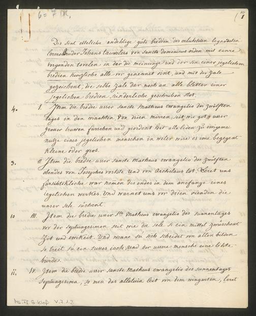 Ms. Ff. G. Kloß V.7.1 Mappe 3 - Bibliographisches Material zu Johannes Tauler