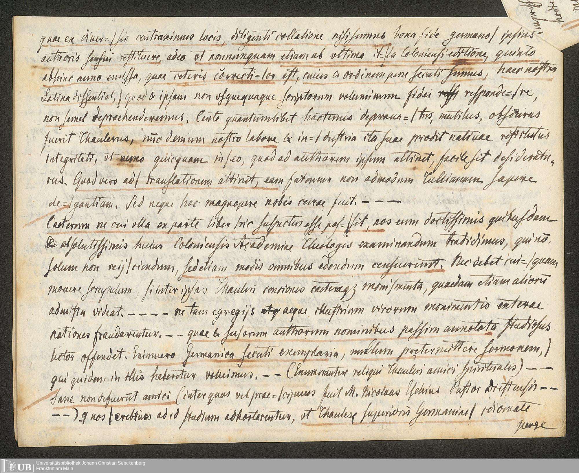Ms. Ff. G. Kloß V.7.1 Mappe 1 - Bibliographisches Material zu Johannes Tauler