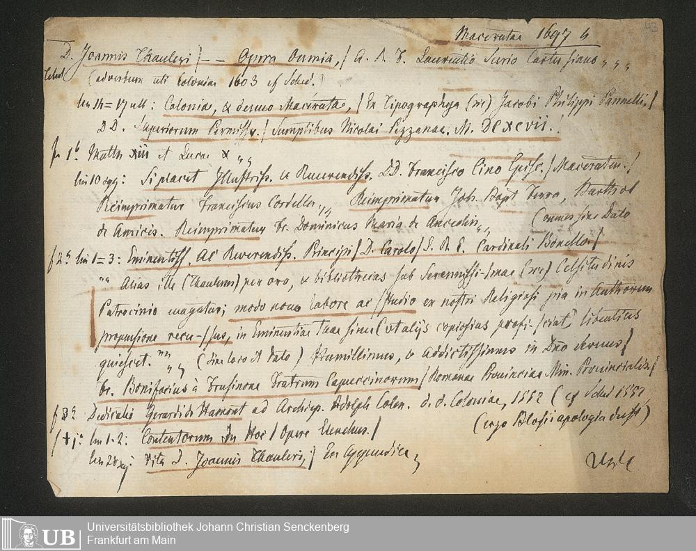 Ms. Ff. G. Kloß V.7.1 Mappe 1 - Bibliographisches Material zu Johannes Tauler
