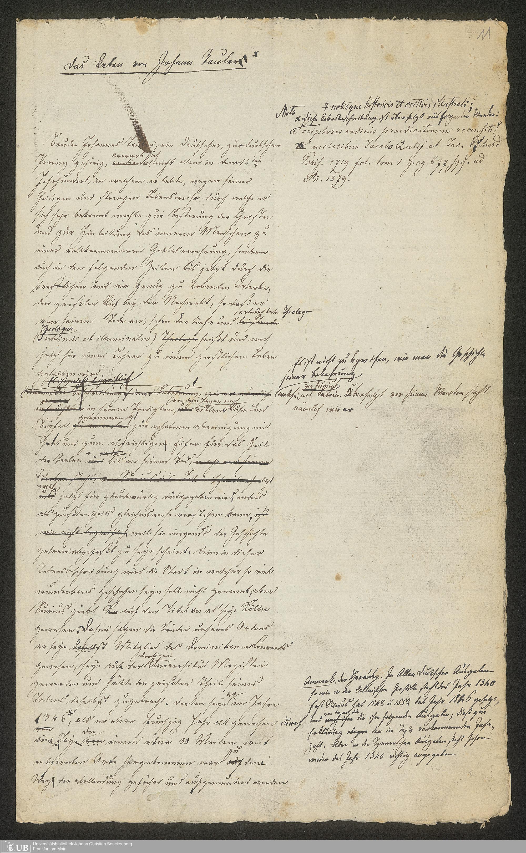 Ms. Ff. G. Kloß V.7.2 - Biographisches Material zu Johannes Tauler