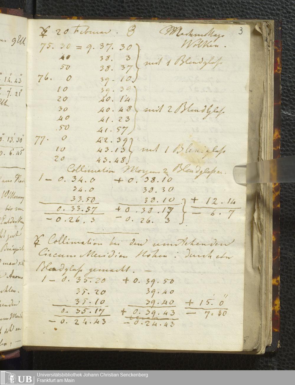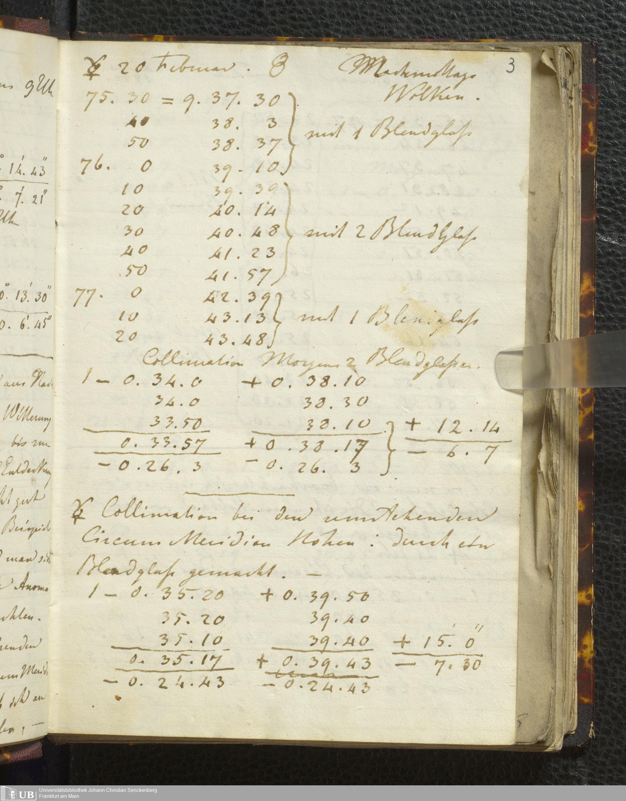 Ms. Ff. E. Rüppell I - Original Manuscript der auf meinen Reisen in Africa in den Jahren 1822 - 1827 gemachten astronomischen Beobachtungen. Sie sind sämmtlich theils in Zach's astronomischer Correspondenz, theils in dem Anhang zu meinen Reisen in Nubien pp. abgedruckt