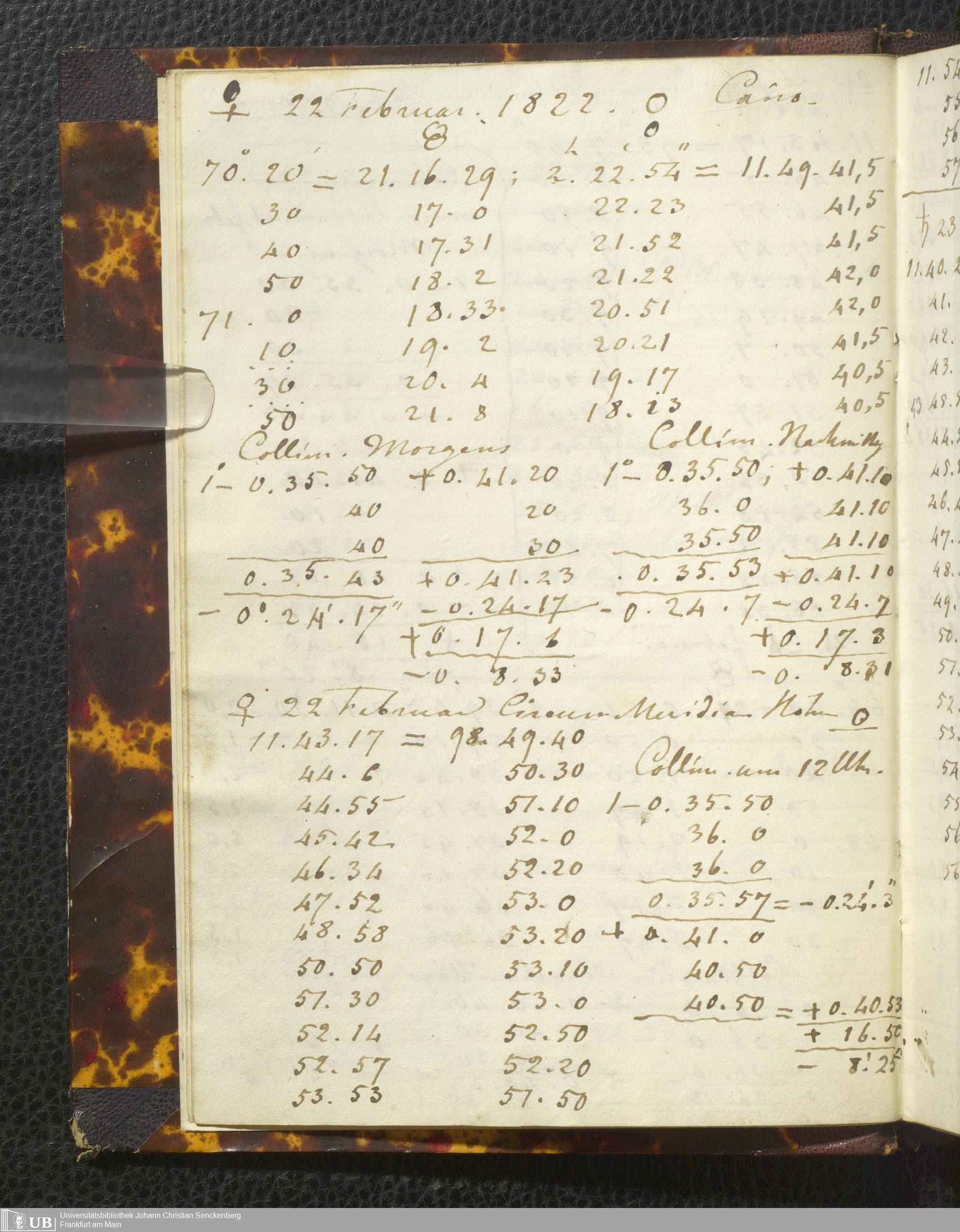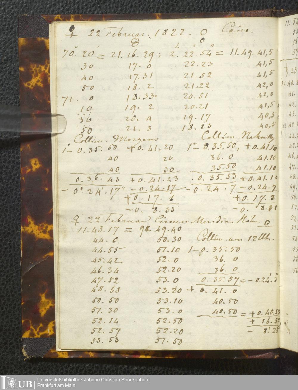 Ms. Ff. E. Rüppell I - Original Manuscript der auf meinen Reisen in Africa in den Jahren 1822 - 1827 gemachten astronomischen Beobachtungen. Sie sind sämmtlich theils in Zach's astronomischer Correspondenz, theils in dem Anhang zu meinen Reisen in Nubien pp. abgedruckt