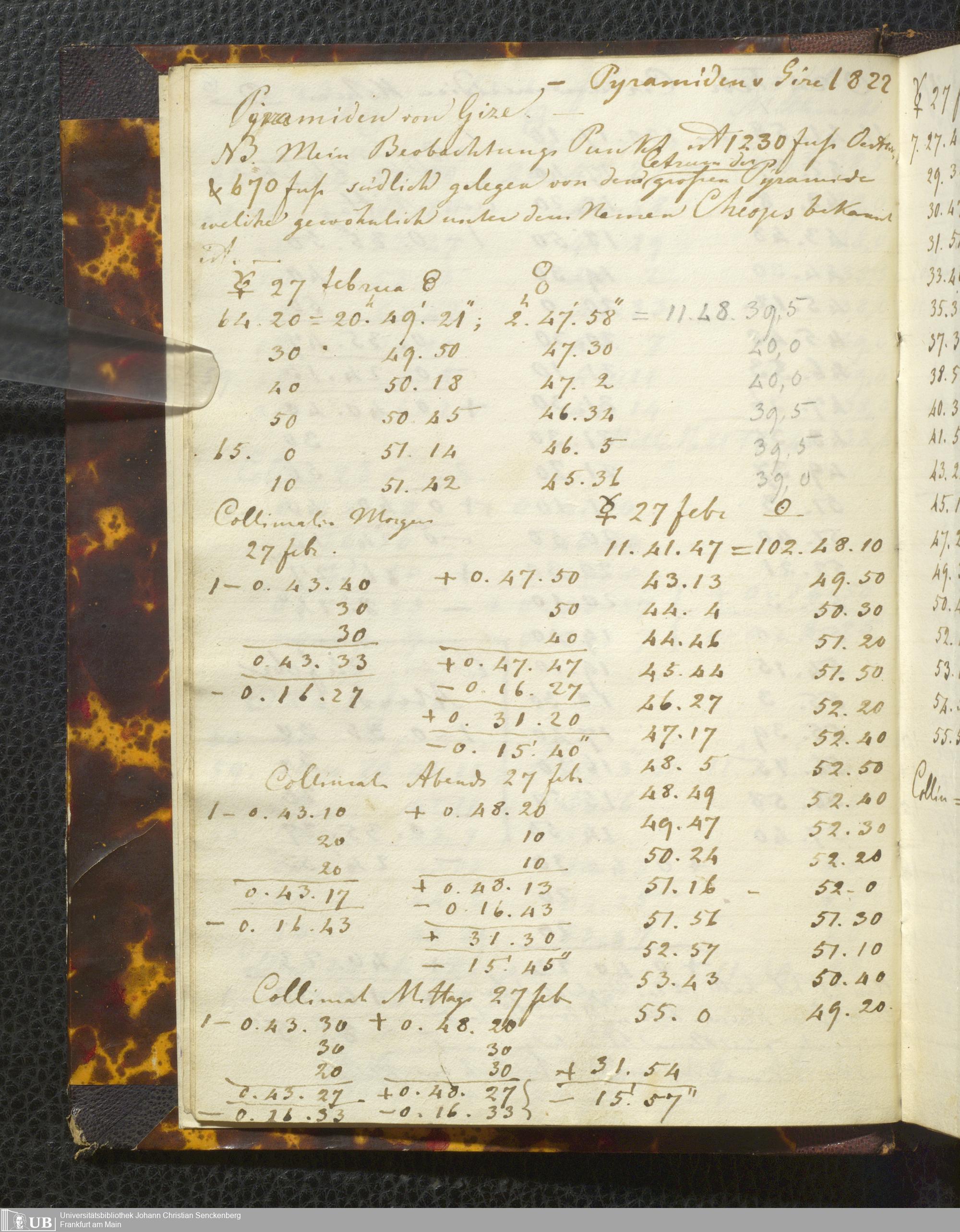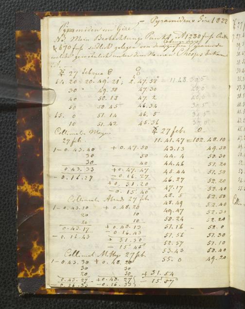 Ms. Ff. E. Rüppell I - Original Manuscript der auf meinen Reisen in Africa in den Jahren 1822 - 1827 gemachten astronomischen Beobachtungen. Sie sind sämmtlich theils in Zach's astronomischer Correspondenz, theils in dem Anhang zu meinen Reisen in Nubien pp. abgedruckt