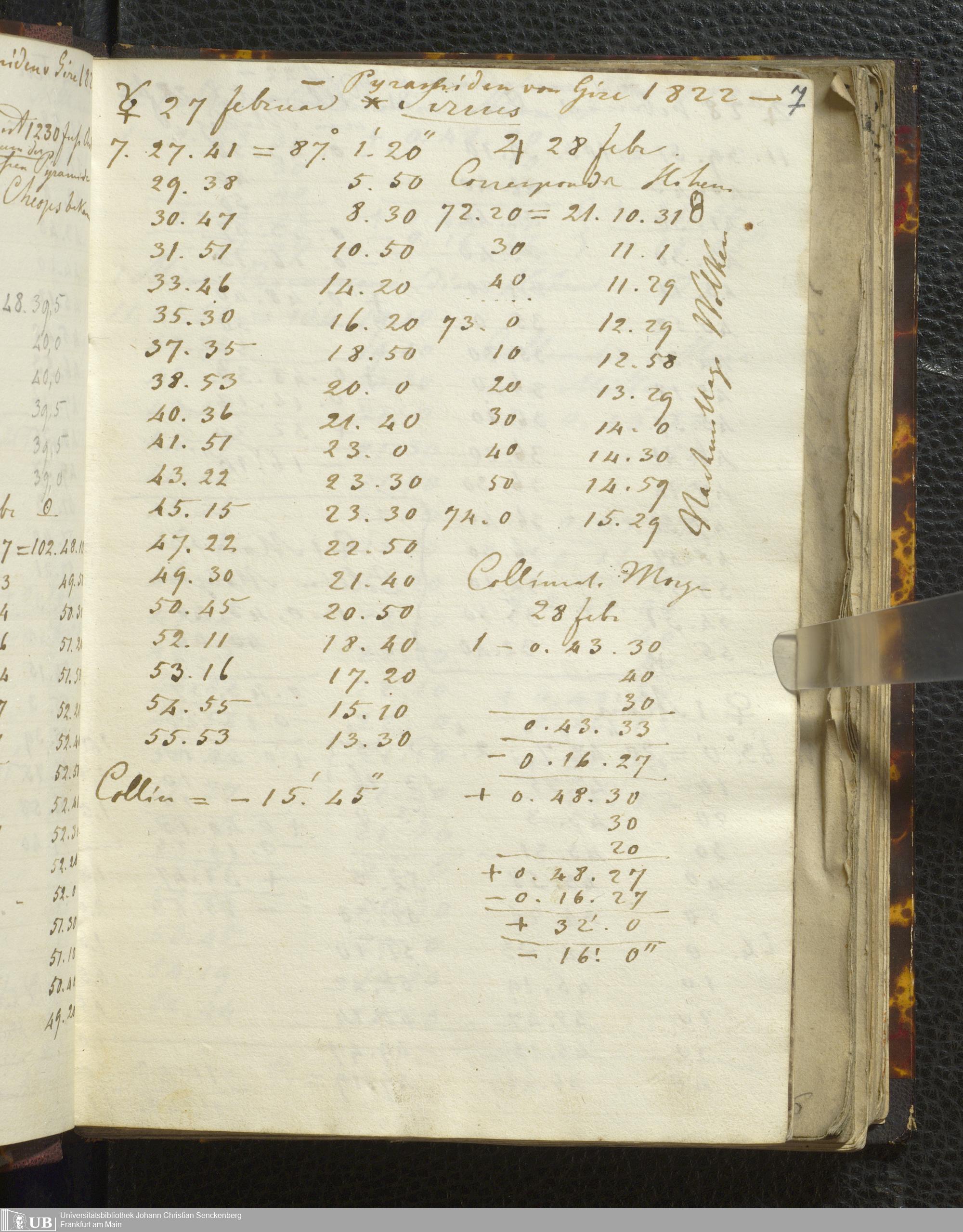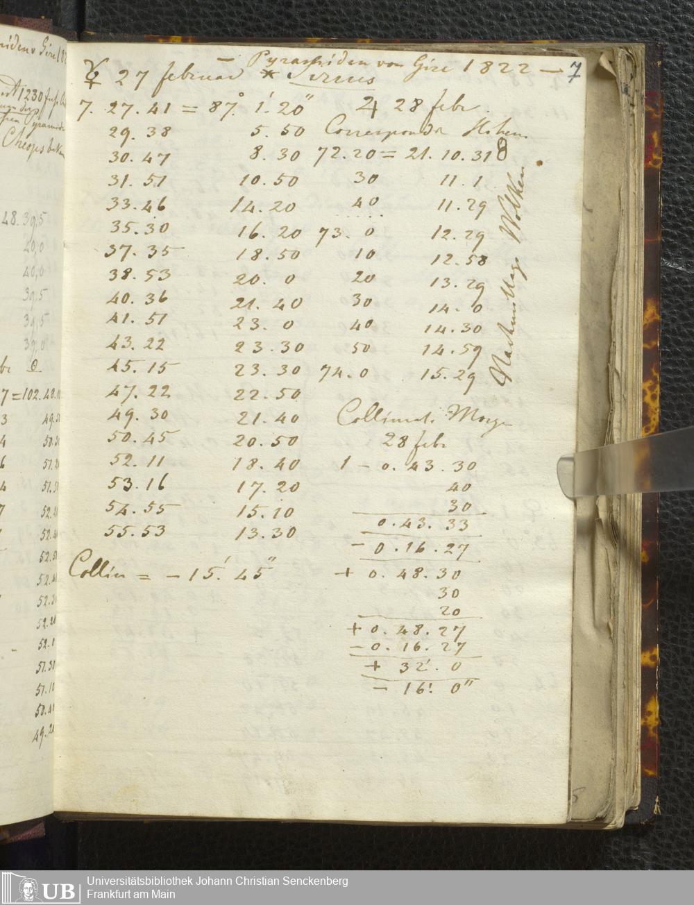 Ms. Ff. E. Rüppell I - Original Manuscript der auf meinen Reisen in Africa in den Jahren 1822 - 1827 gemachten astronomischen Beobachtungen. Sie sind sämmtlich theils in Zach's astronomischer Correspondenz, theils in dem Anhang zu meinen Reisen in Nubien pp. abgedruckt