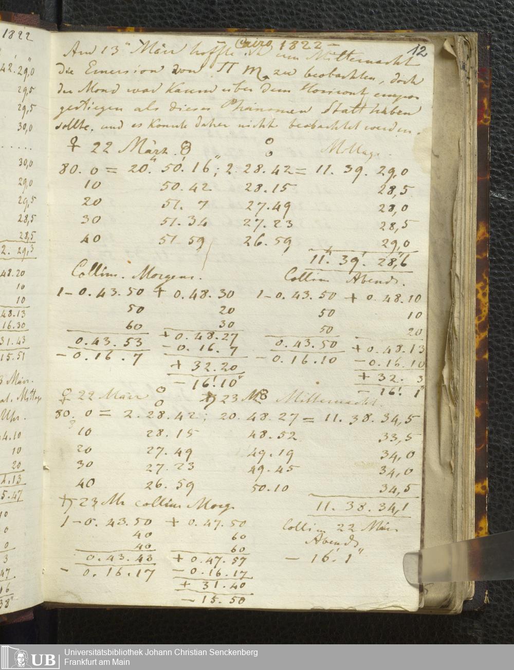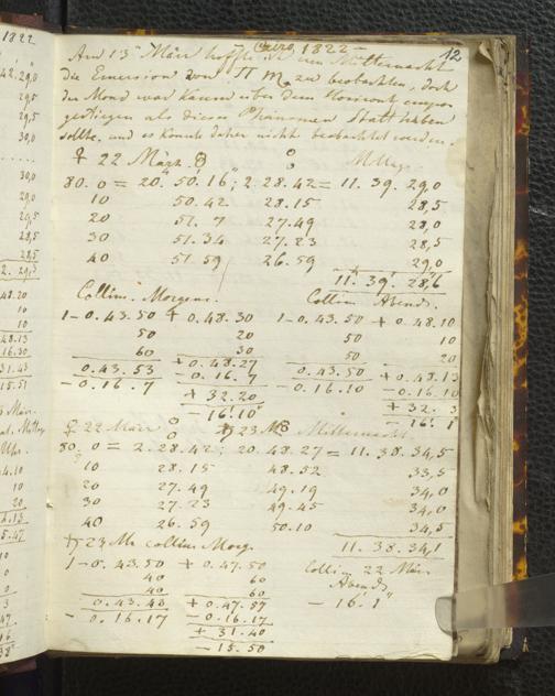 Ms. Ff. E. Rüppell I - Original Manuscript der auf meinen Reisen in Africa in den Jahren 1822 - 1827 gemachten astronomischen Beobachtungen. Sie sind sämmtlich theils in Zach's astronomischer Correspondenz, theils in dem Anhang zu meinen Reisen in Nubien pp. abgedruckt
