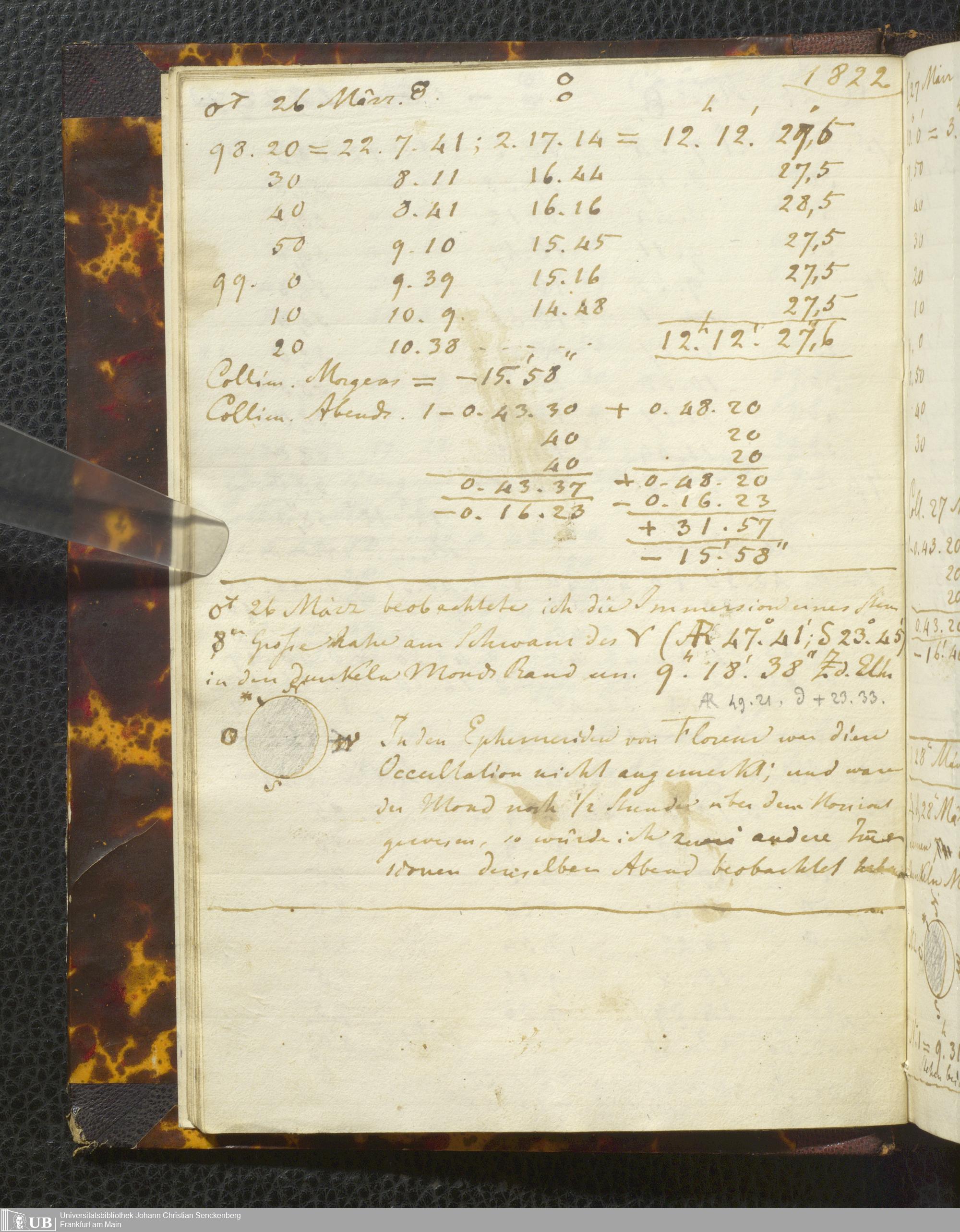 Ms. Ff. E. Rüppell I - Original Manuscript der auf meinen Reisen in Africa in den Jahren 1822 - 1827 gemachten astronomischen Beobachtungen. Sie sind sämmtlich theils in Zach's astronomischer Correspondenz, theils in dem Anhang zu meinen Reisen in Nubien pp. abgedruckt