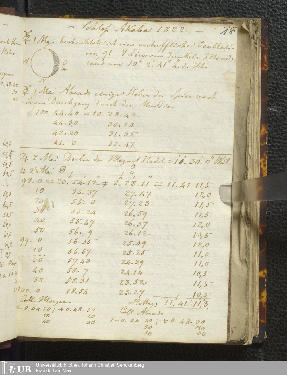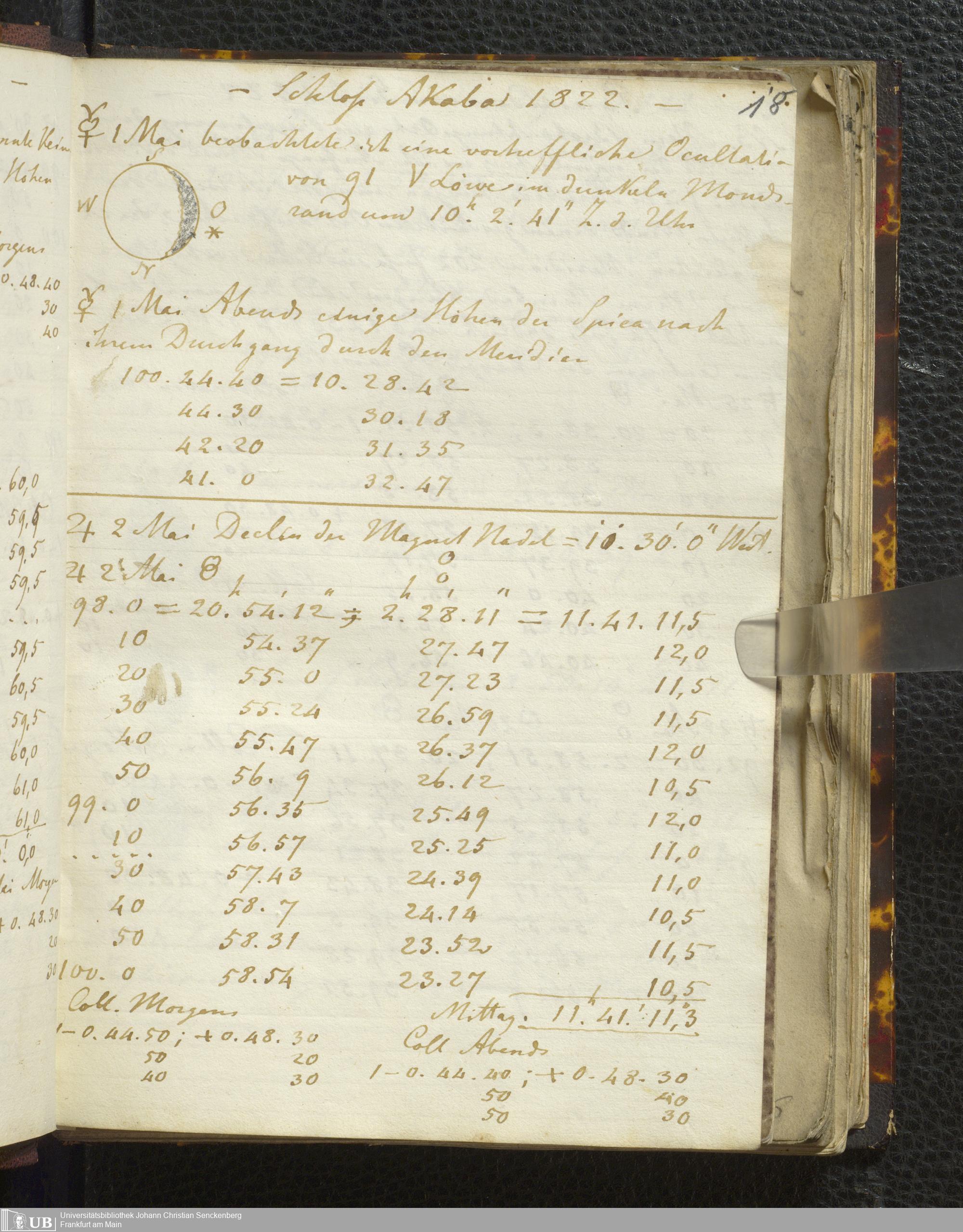 Ms. Ff. E. Rüppell I - Original Manuscript der auf meinen Reisen in Africa in den Jahren 1822 - 1827 gemachten astronomischen Beobachtungen. Sie sind sämmtlich theils in Zach's astronomischer Correspondenz, theils in dem Anhang zu meinen Reisen in Nubien pp. abgedruckt