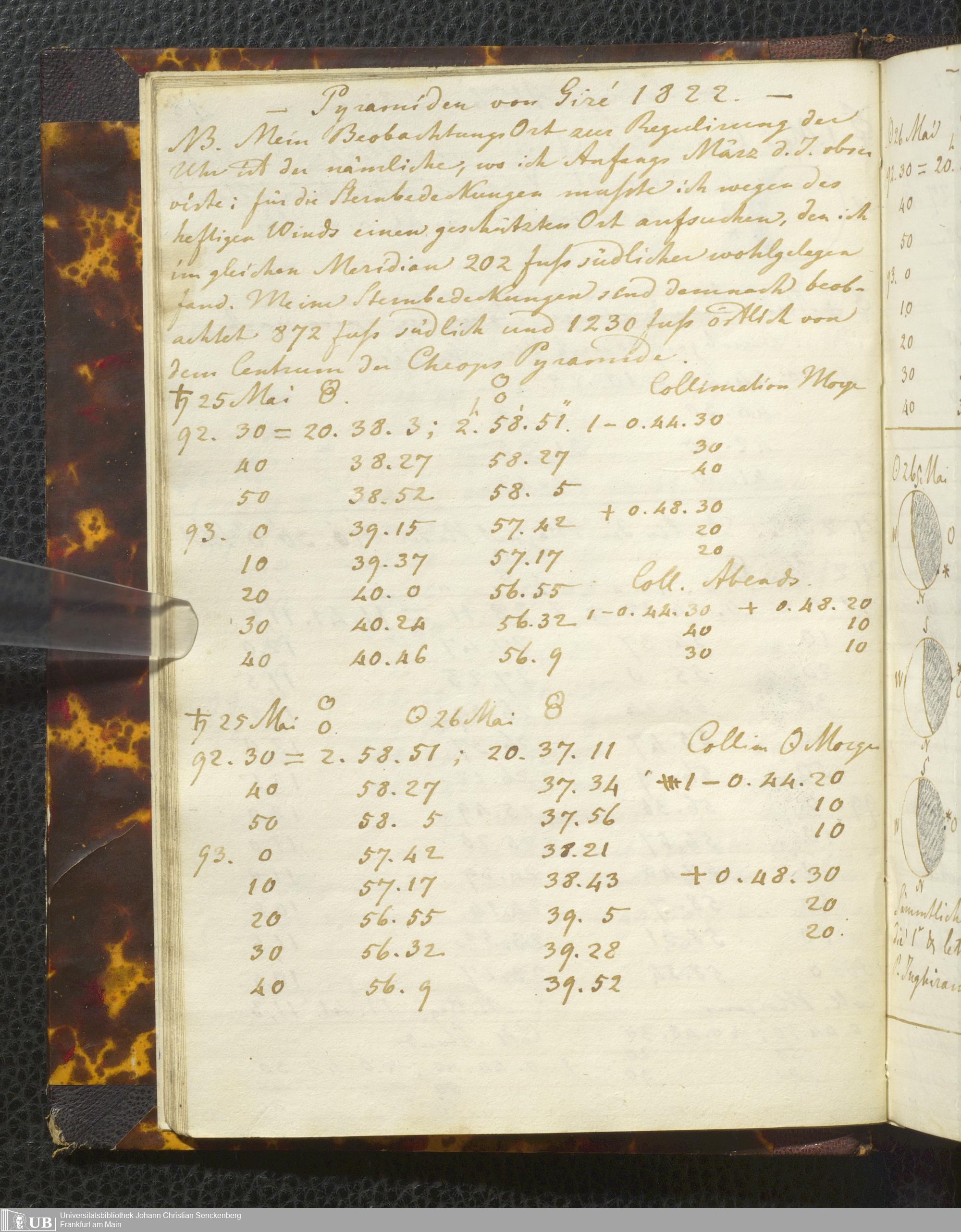 Ms. Ff. E. Rüppell I - Original Manuscript der auf meinen Reisen in Africa in den Jahren 1822 - 1827 gemachten astronomischen Beobachtungen. Sie sind sämmtlich theils in Zach's astronomischer Correspondenz, theils in dem Anhang zu meinen Reisen in Nubien pp. abgedruckt
