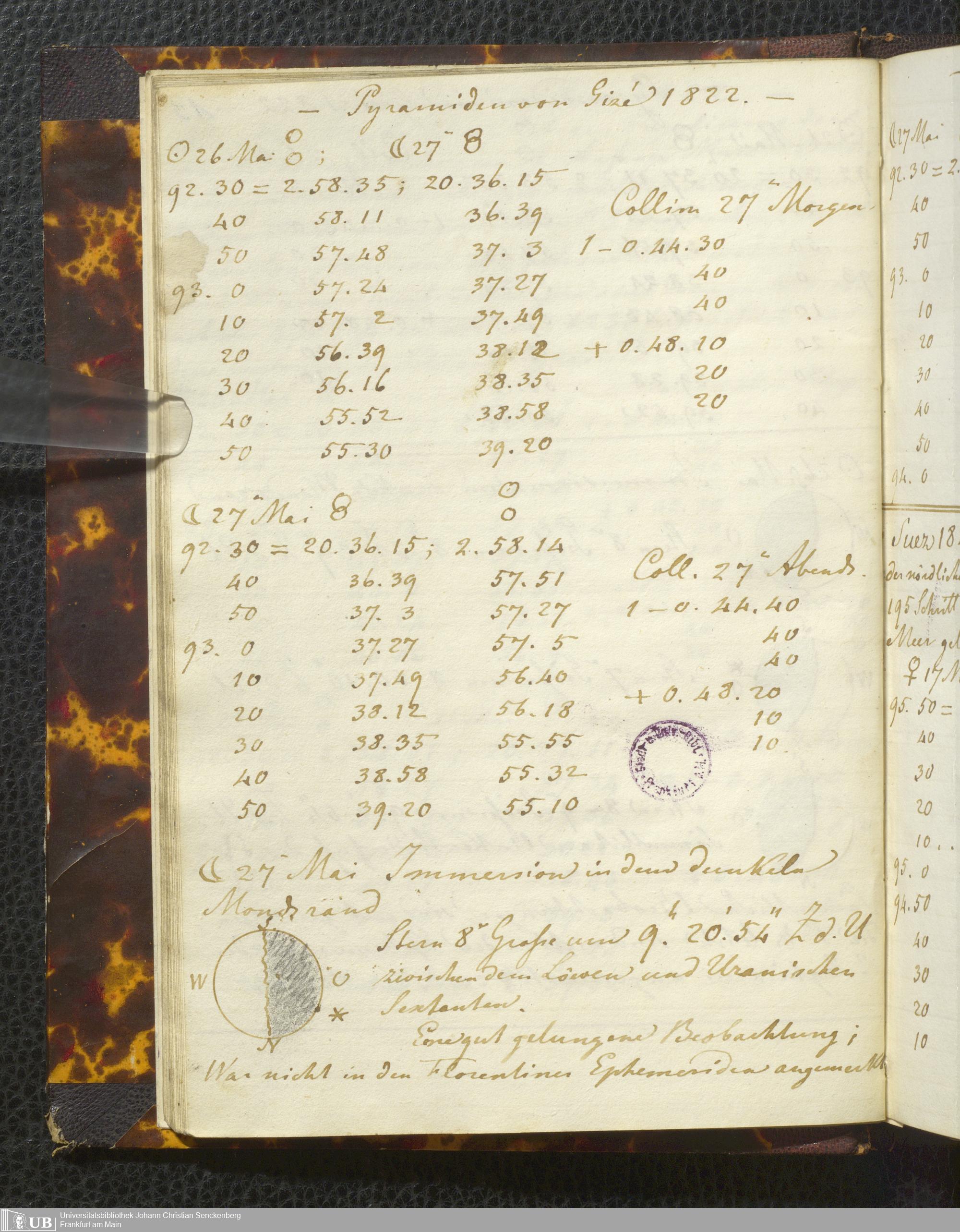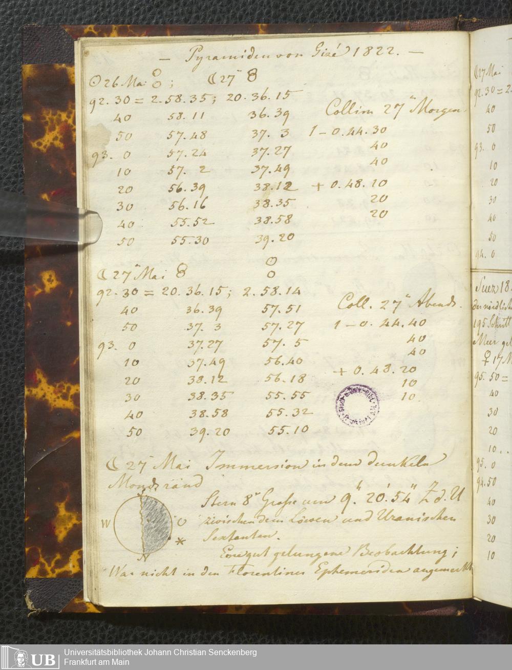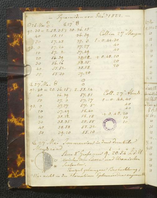 Ms. Ff. E. Rüppell I - Original Manuscript der auf meinen Reisen in Africa in den Jahren 1822 - 1827 gemachten astronomischen Beobachtungen. Sie sind sämmtlich theils in Zach's astronomischer Correspondenz, theils in dem Anhang zu meinen Reisen in Nubien pp. abgedruckt