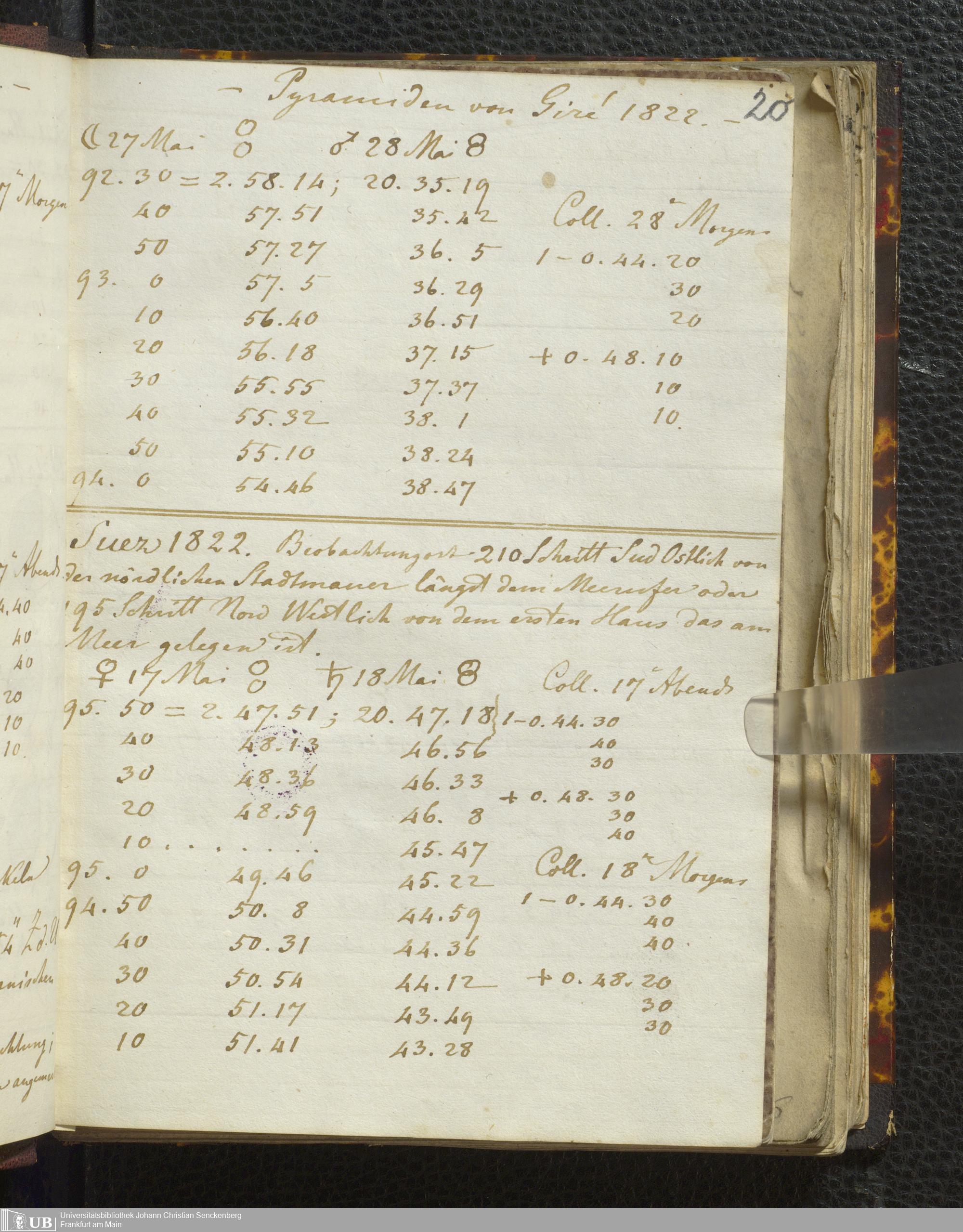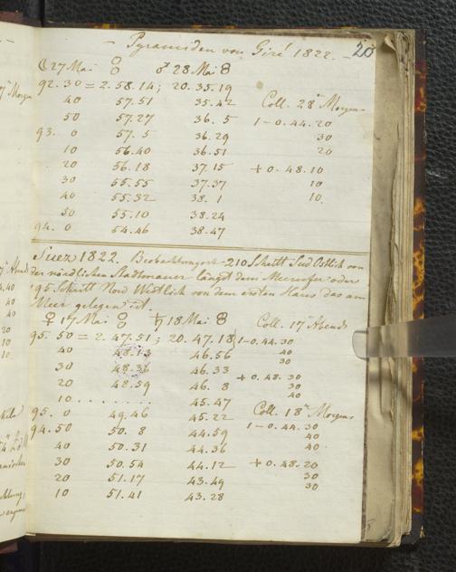 Ms. Ff. E. Rüppell I - Original Manuscript der auf meinen Reisen in Africa in den Jahren 1822 - 1827 gemachten astronomischen Beobachtungen. Sie sind sämmtlich theils in Zach's astronomischer Correspondenz, theils in dem Anhang zu meinen Reisen in Nubien pp. abgedruckt