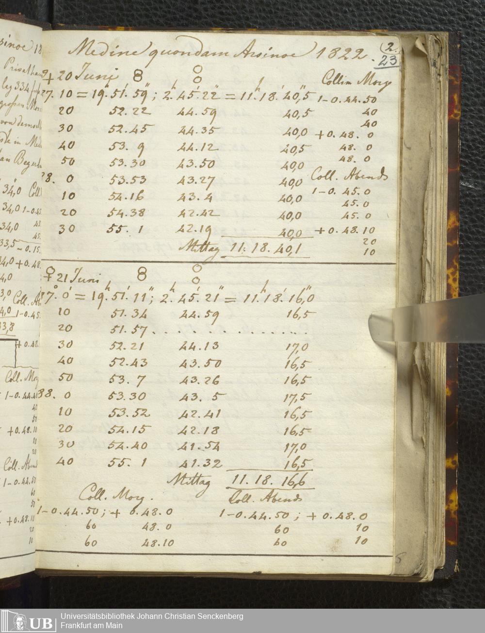 Ms. Ff. E. Rüppell I - Original Manuscript der auf meinen Reisen in Africa in den Jahren 1822 - 1827 gemachten astronomischen Beobachtungen. Sie sind sämmtlich theils in Zach's astronomischer Correspondenz, theils in dem Anhang zu meinen Reisen in Nubien pp. abgedruckt