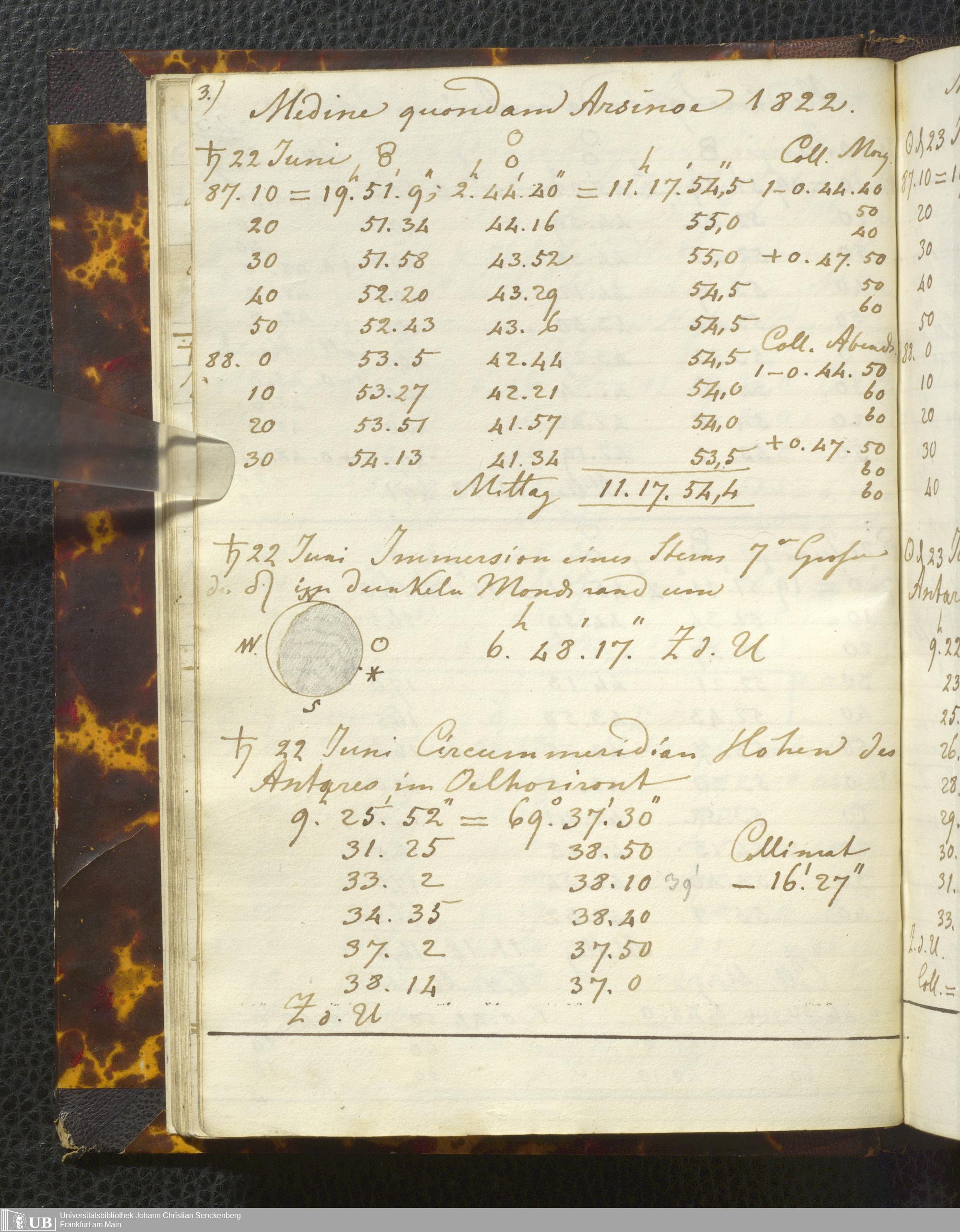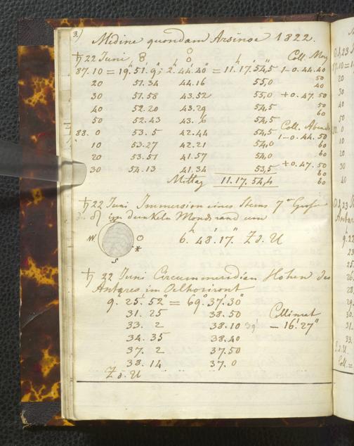 Ms. Ff. E. Rüppell I - Original Manuscript der auf meinen Reisen in Africa in den Jahren 1822 - 1827 gemachten astronomischen Beobachtungen. Sie sind sämmtlich theils in Zach's astronomischer Correspondenz, theils in dem Anhang zu meinen Reisen in Nubien pp. abgedruckt