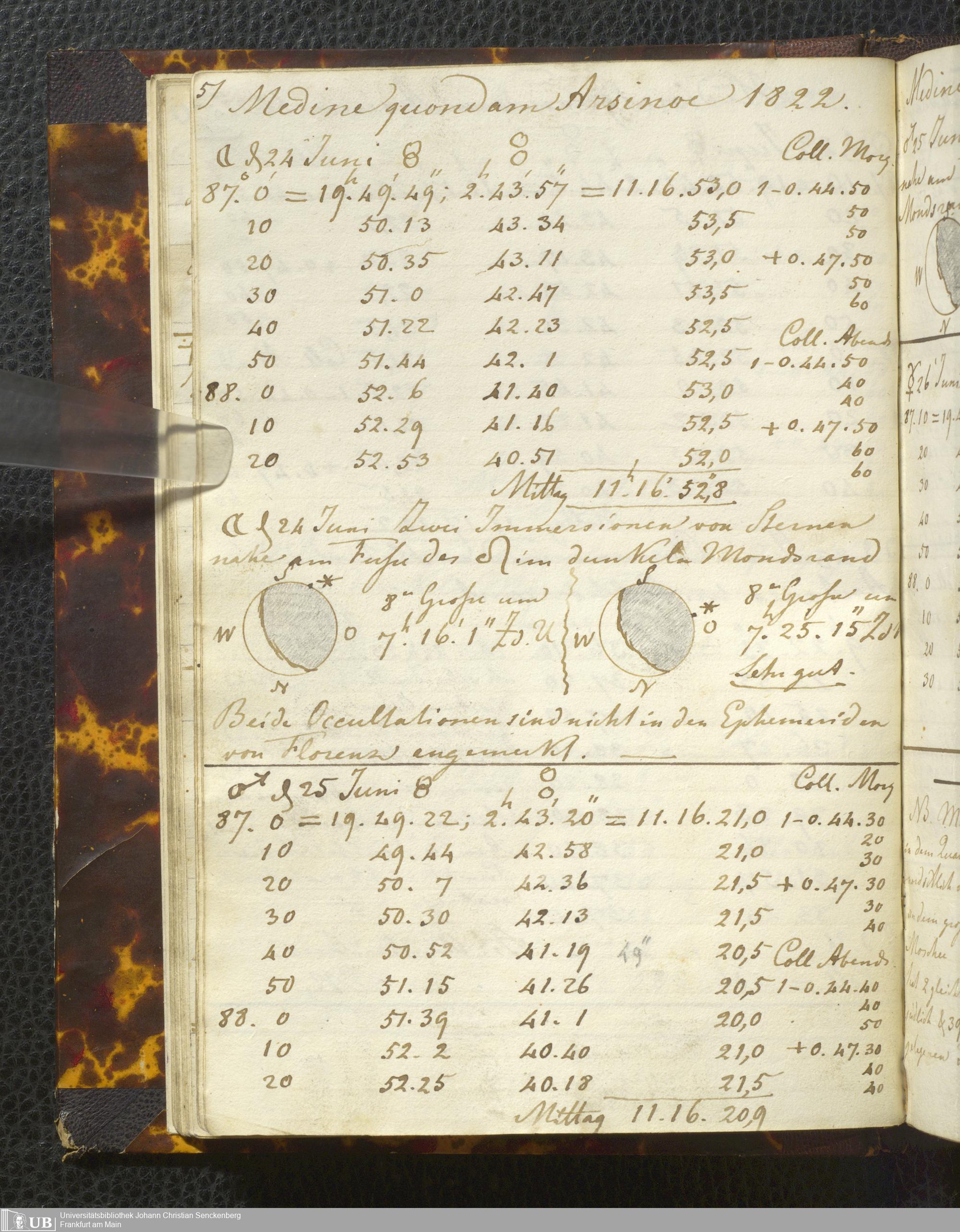 Ms. Ff. E. Rüppell I - Original Manuscript der auf meinen Reisen in Africa in den Jahren 1822 - 1827 gemachten astronomischen Beobachtungen. Sie sind sämmtlich theils in Zach's astronomischer Correspondenz, theils in dem Anhang zu meinen Reisen in Nubien pp. abgedruckt
