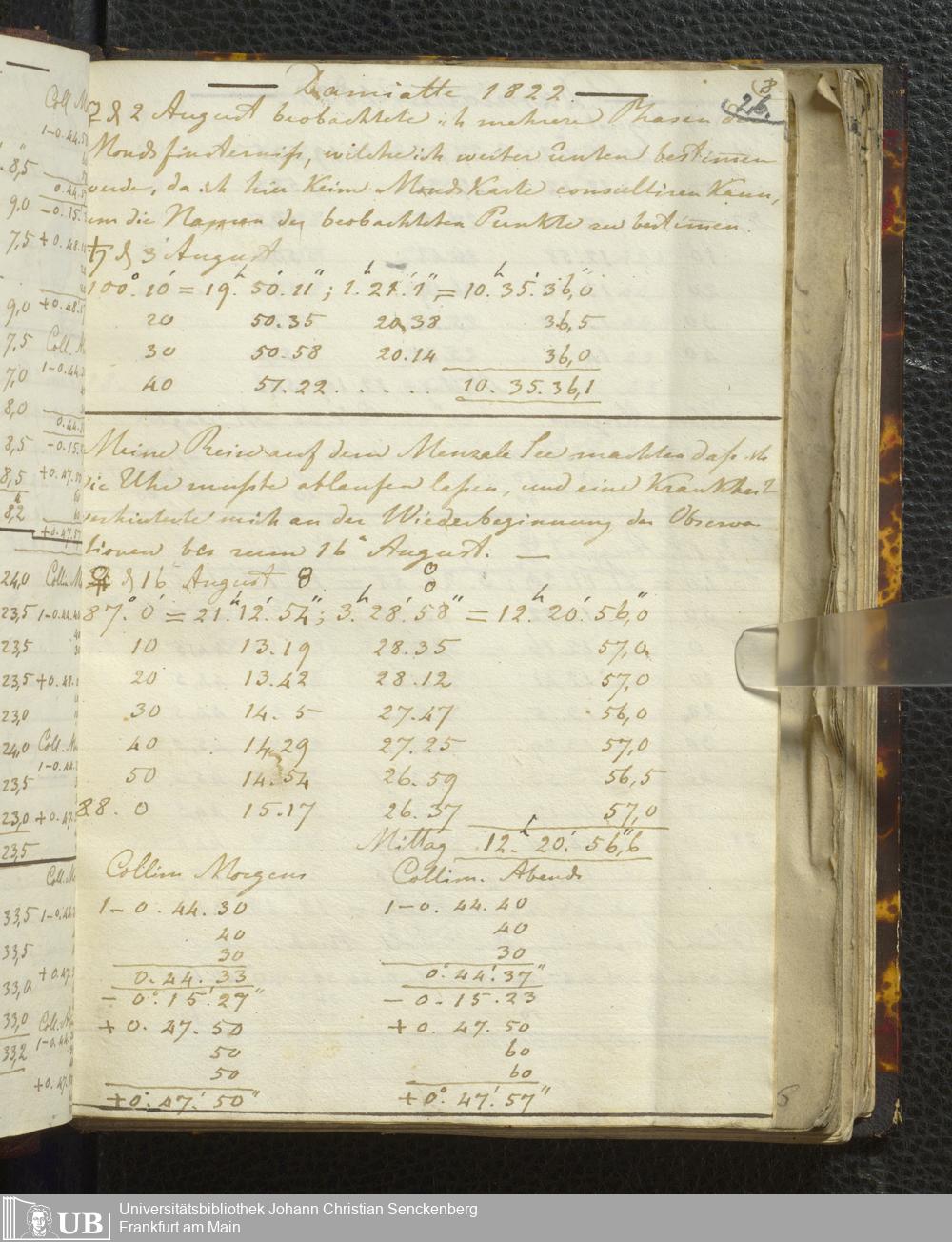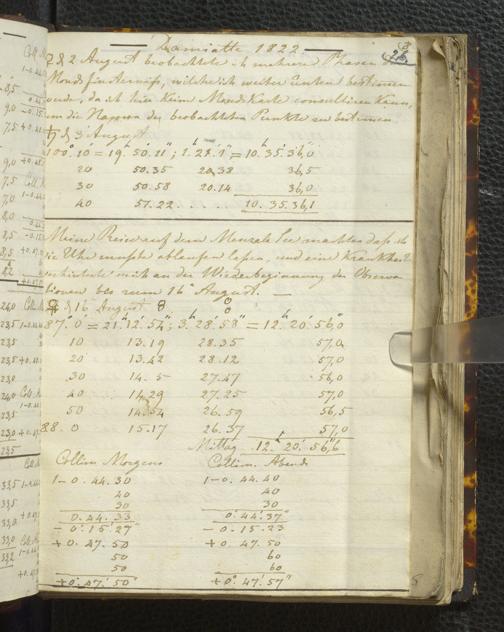 Ms. Ff. E. Rüppell I - Original Manuscript der auf meinen Reisen in Africa in den Jahren 1822 - 1827 gemachten astronomischen Beobachtungen. Sie sind sämmtlich theils in Zach's astronomischer Correspondenz, theils in dem Anhang zu meinen Reisen in Nubien pp. abgedruckt