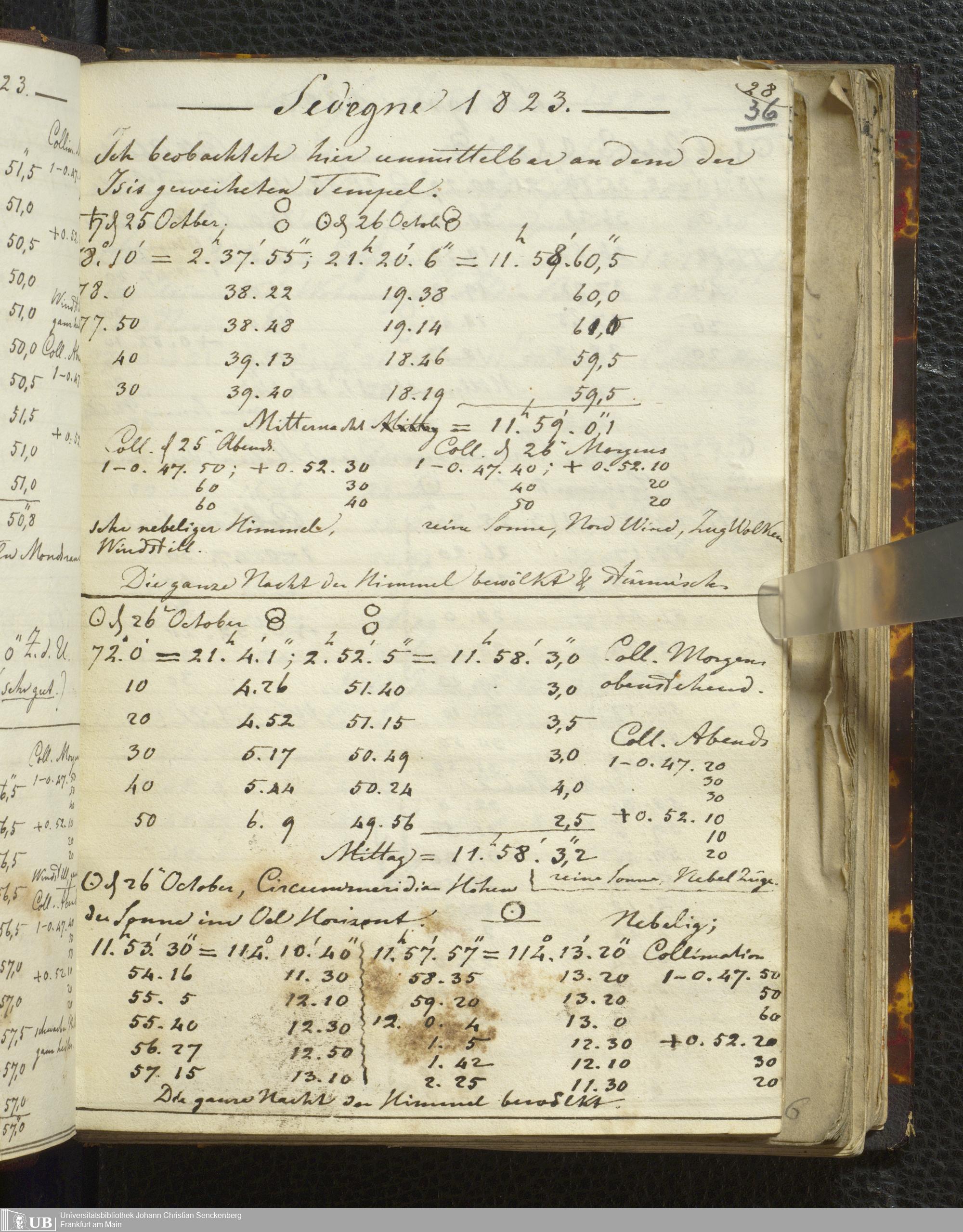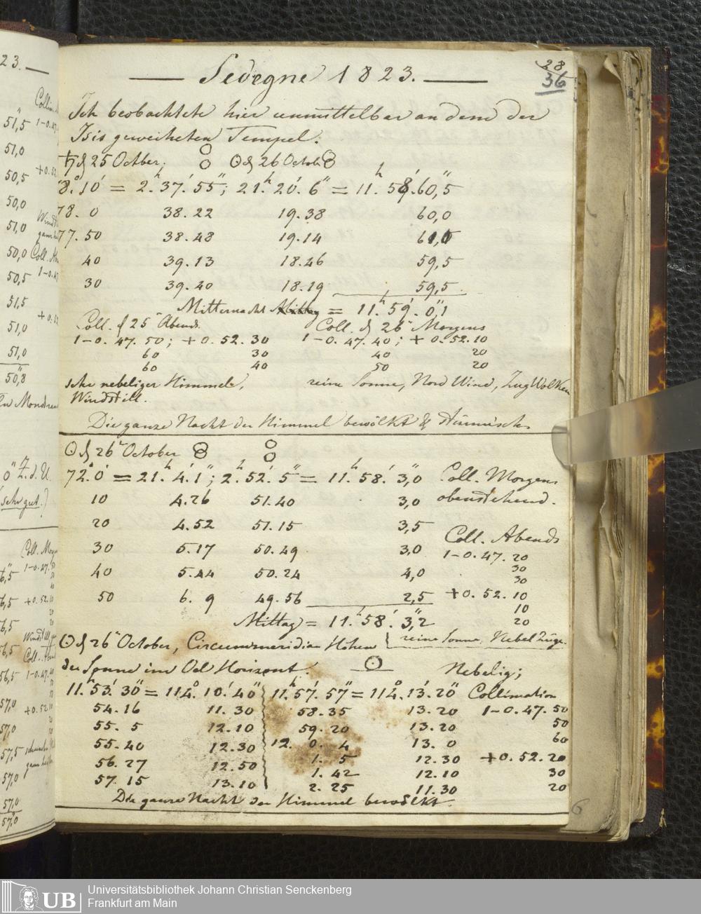 Ms. Ff. E. Rüppell I - Original Manuscript der auf meinen Reisen in Africa in den Jahren 1822 - 1827 gemachten astronomischen Beobachtungen. Sie sind sämmtlich theils in Zach's astronomischer Correspondenz, theils in dem Anhang zu meinen Reisen in Nubien pp. abgedruckt