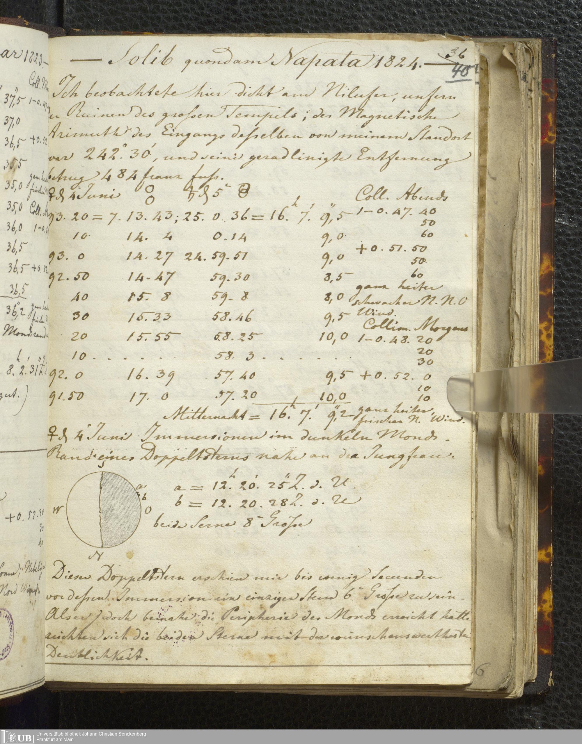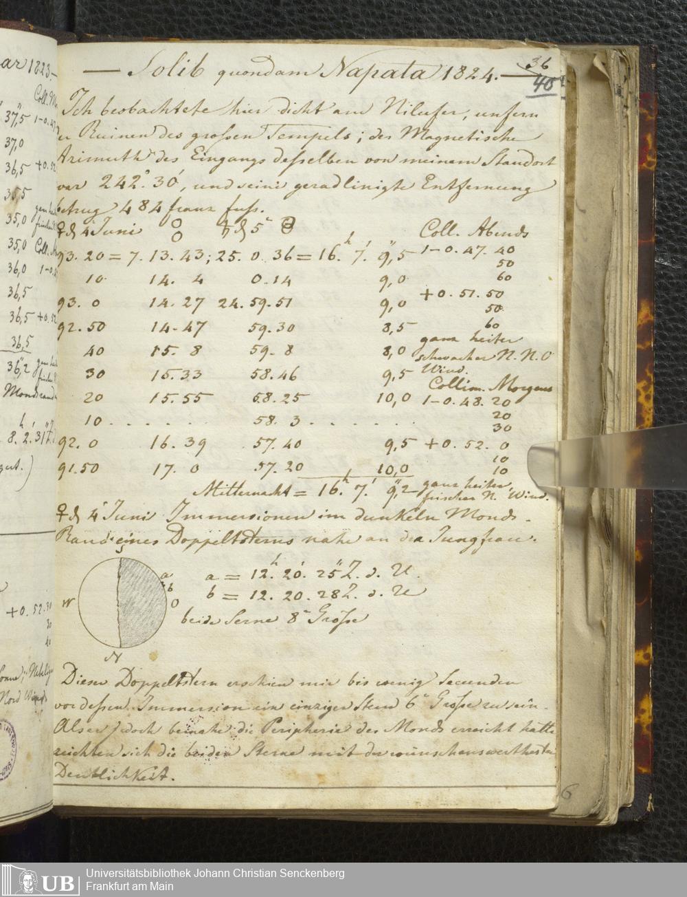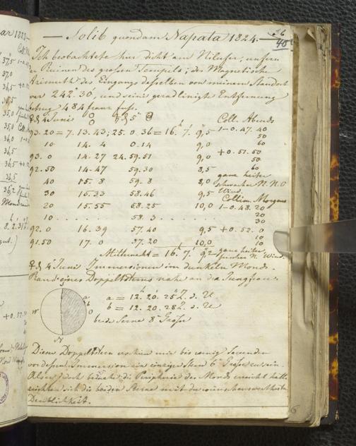 Ms. Ff. E. Rüppell I - Original Manuscript der auf meinen Reisen in Africa in den Jahren 1822 - 1827 gemachten astronomischen Beobachtungen. Sie sind sämmtlich theils in Zach's astronomischer Correspondenz, theils in dem Anhang zu meinen Reisen in Nubien pp. abgedruckt