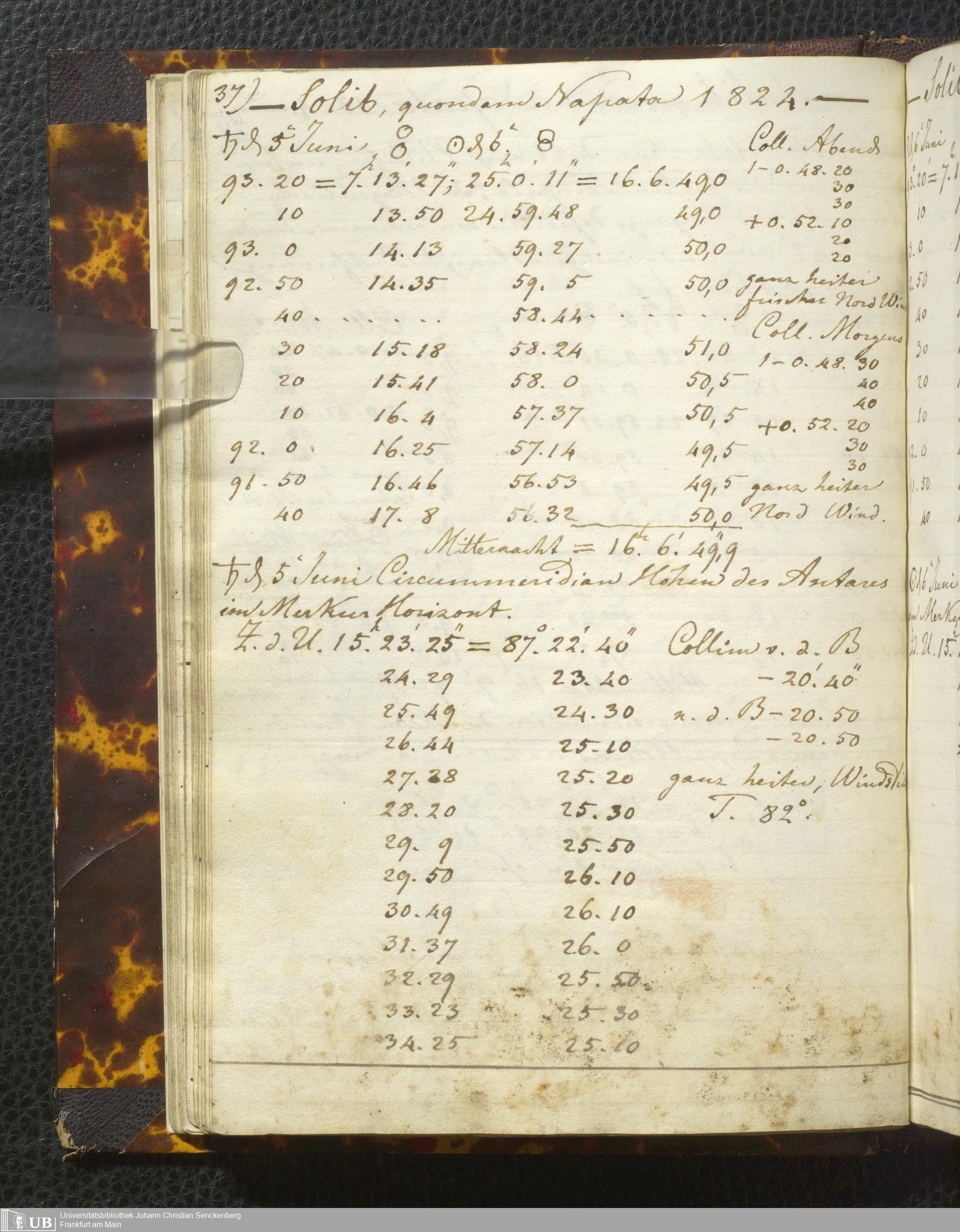 Ms. Ff. E. Rüppell I - Original Manuscript der auf meinen Reisen in Africa in den Jahren 1822 - 1827 gemachten astronomischen Beobachtungen. Sie sind sämmtlich theils in Zach's astronomischer Correspondenz, theils in dem Anhang zu meinen Reisen in Nubien pp. abgedruckt