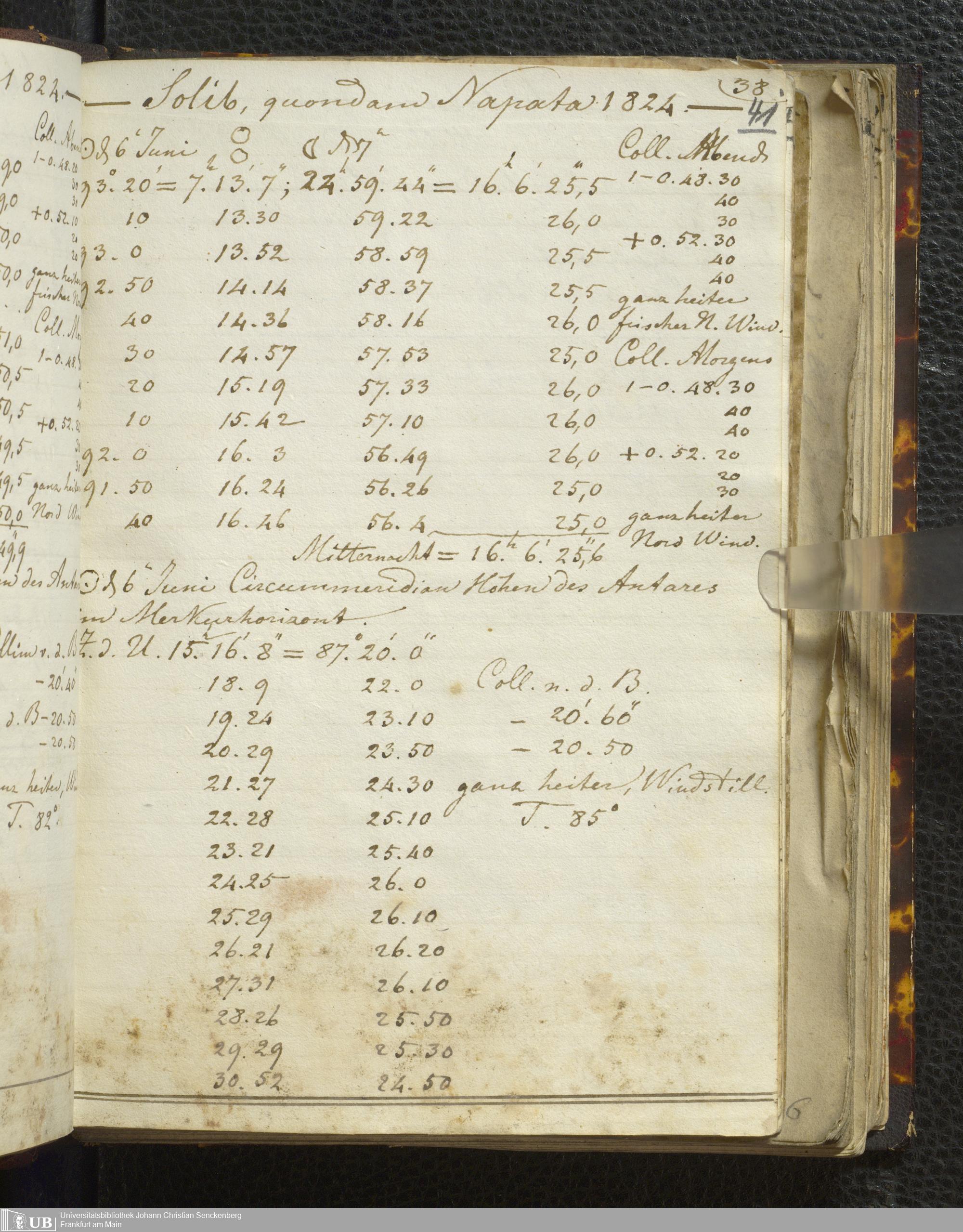 Ms. Ff. E. Rüppell I - Original Manuscript der auf meinen Reisen in Africa in den Jahren 1822 - 1827 gemachten astronomischen Beobachtungen. Sie sind sämmtlich theils in Zach's astronomischer Correspondenz, theils in dem Anhang zu meinen Reisen in Nubien pp. abgedruckt