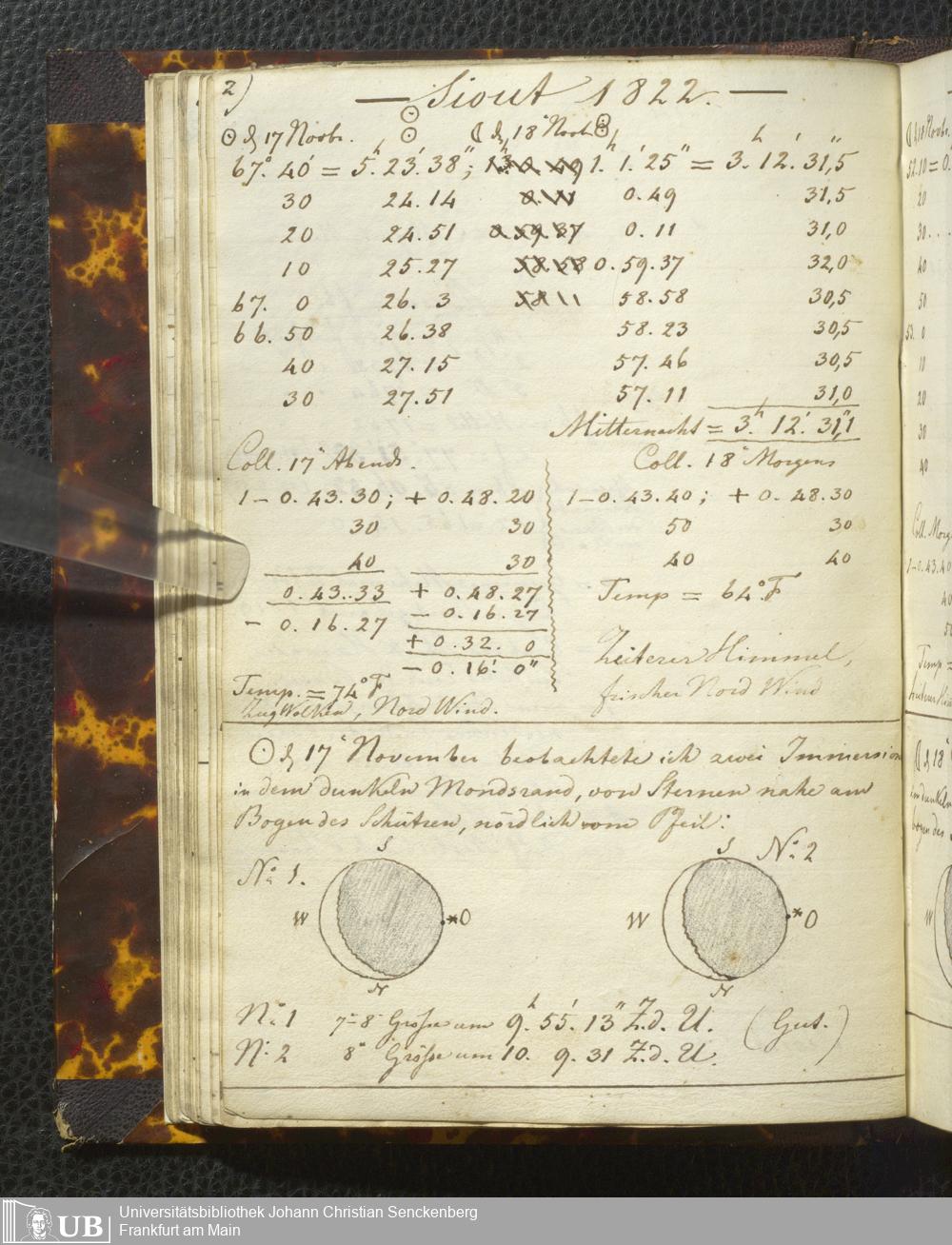 Ms. Ff. E. Rüppell I - Original Manuscript der auf meinen Reisen in Africa in den Jahren 1822 - 1827 gemachten astronomischen Beobachtungen. Sie sind sämmtlich theils in Zach's astronomischer Correspondenz, theils in dem Anhang zu meinen Reisen in Nubien pp. abgedruckt