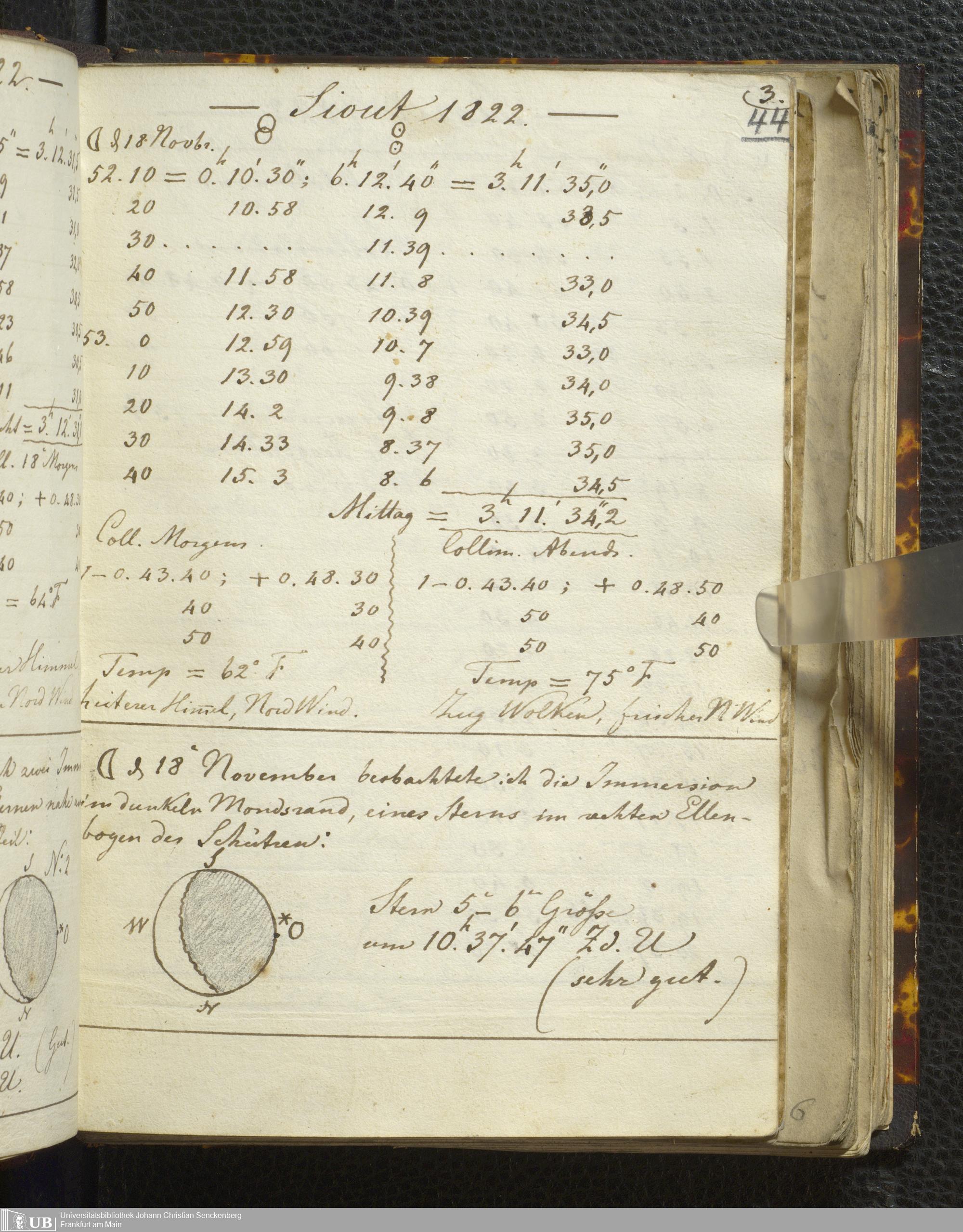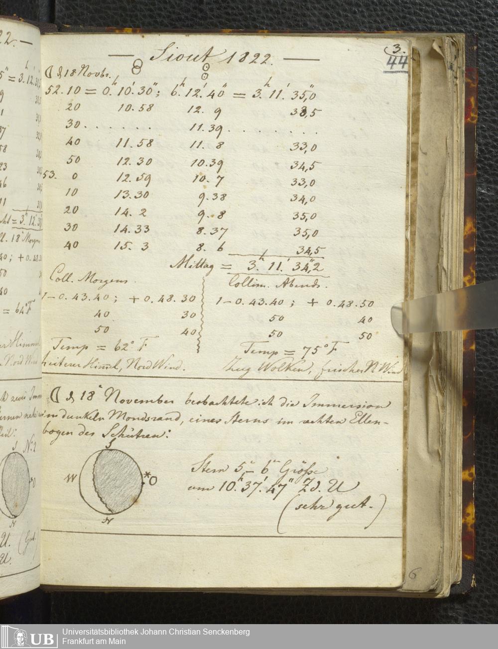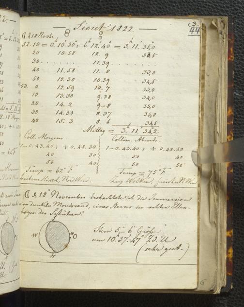 Ms. Ff. E. Rüppell I - Original Manuscript der auf meinen Reisen in Africa in den Jahren 1822 - 1827 gemachten astronomischen Beobachtungen. Sie sind sämmtlich theils in Zach's astronomischer Correspondenz, theils in dem Anhang zu meinen Reisen in Nubien pp. abgedruckt
