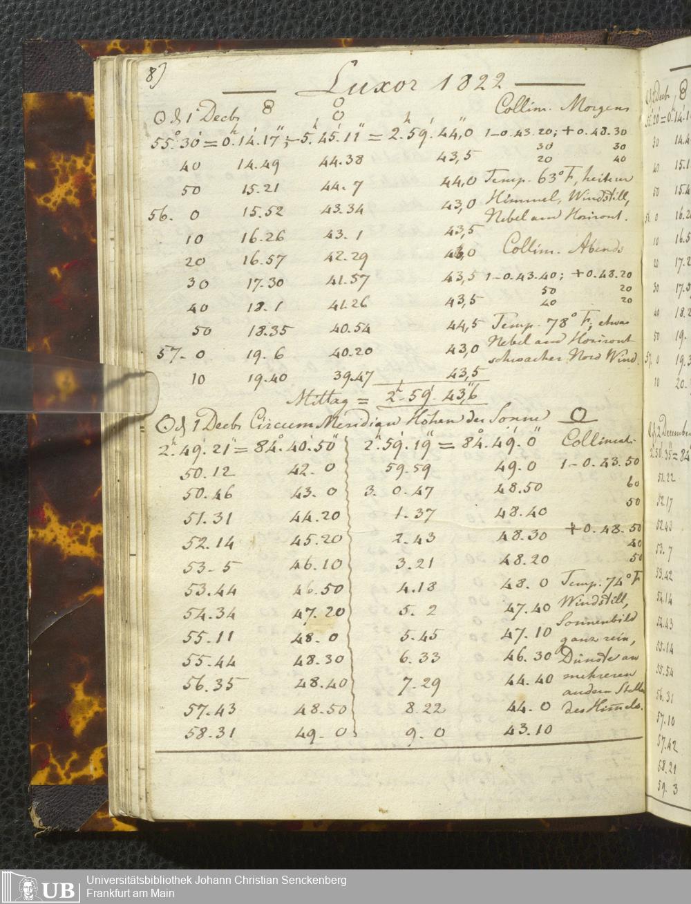 Ms. Ff. E. Rüppell I - Original Manuscript der auf meinen Reisen in Africa in den Jahren 1822 - 1827 gemachten astronomischen Beobachtungen. Sie sind sämmtlich theils in Zach's astronomischer Correspondenz, theils in dem Anhang zu meinen Reisen in Nubien pp. abgedruckt