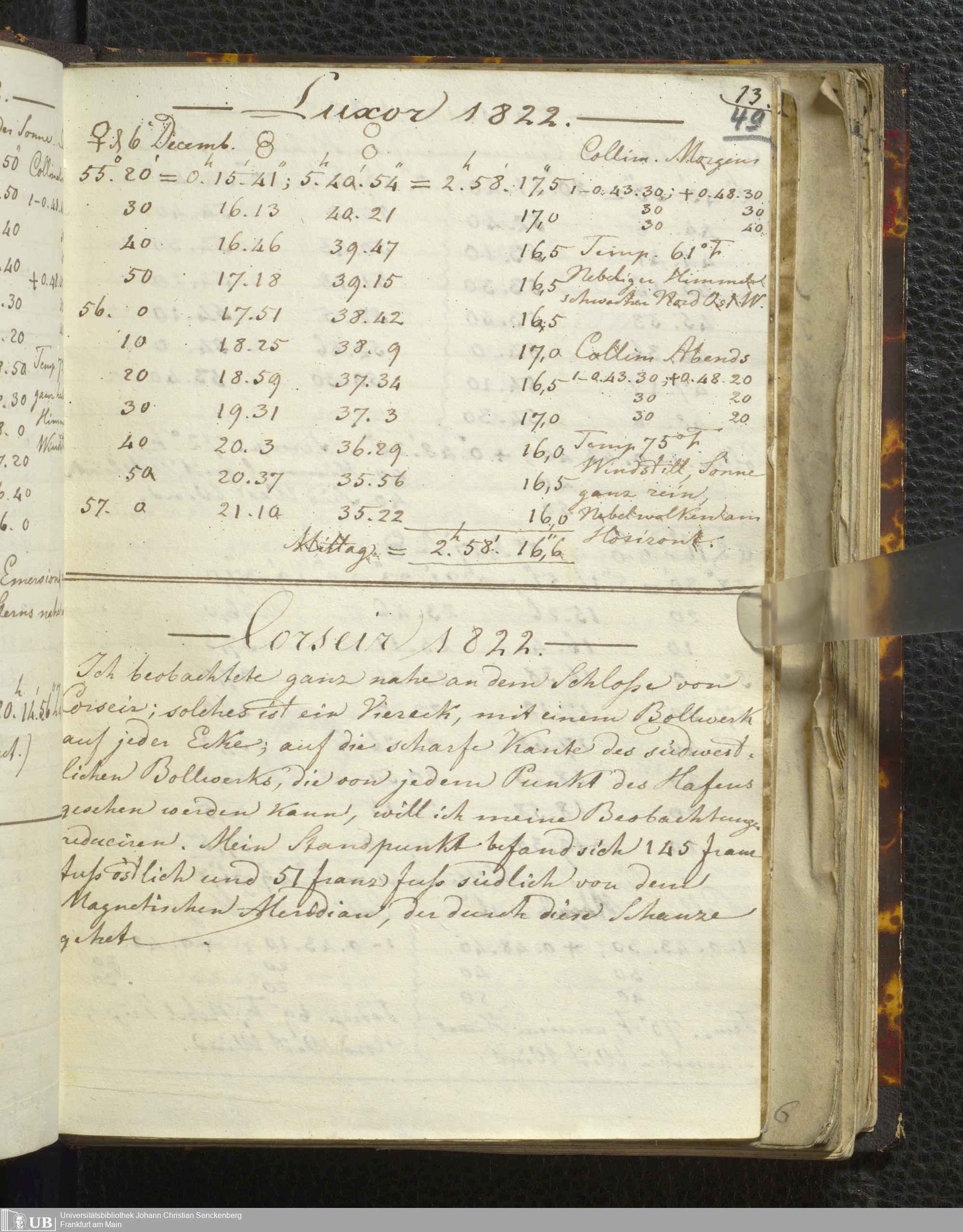Ms. Ff. E. Rüppell I - Original Manuscript der auf meinen Reisen in Africa in den Jahren 1822 - 1827 gemachten astronomischen Beobachtungen. Sie sind sämmtlich theils in Zach's astronomischer Correspondenz, theils in dem Anhang zu meinen Reisen in Nubien pp. abgedruckt