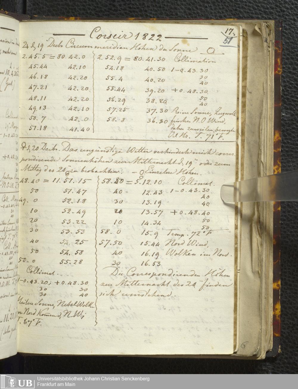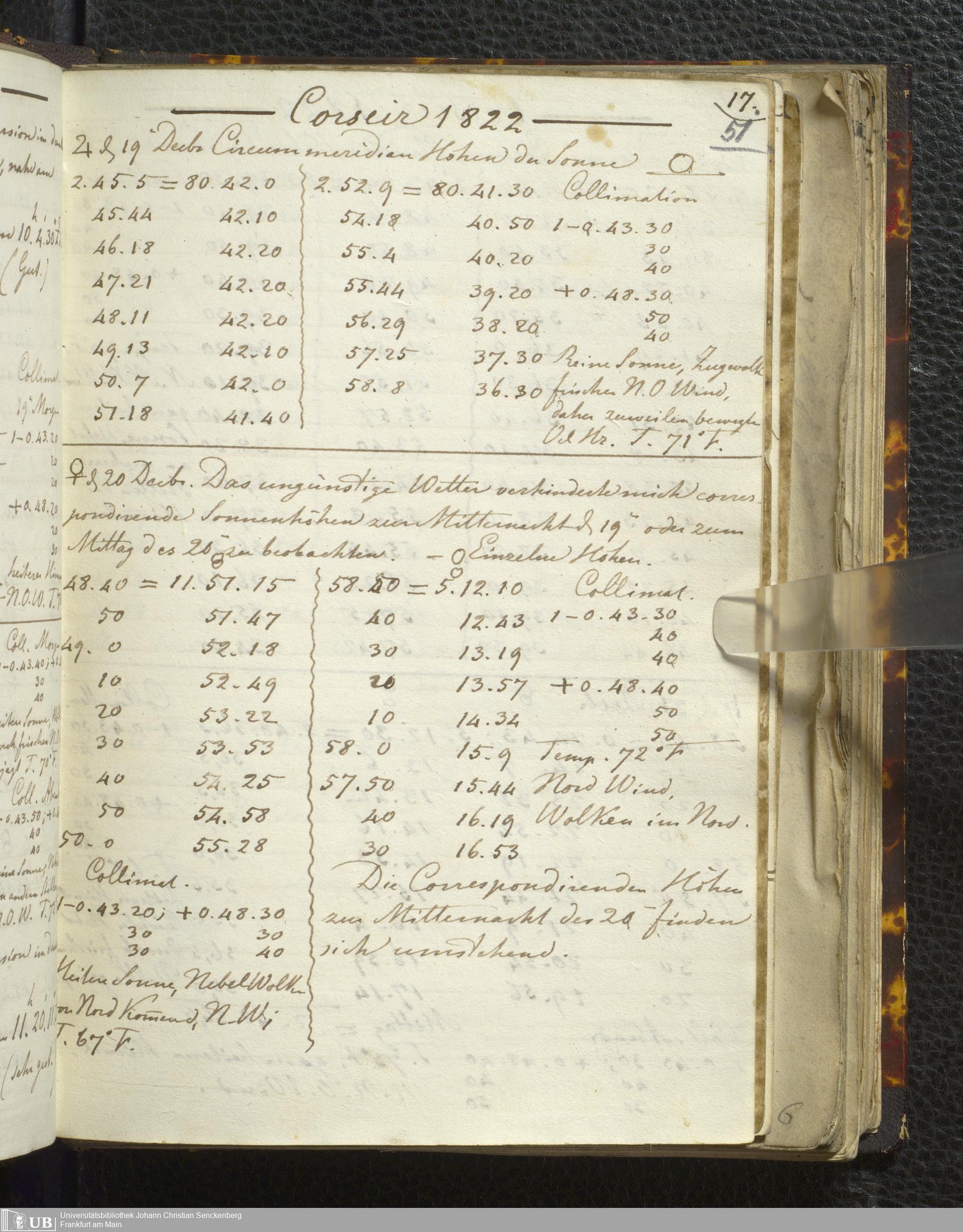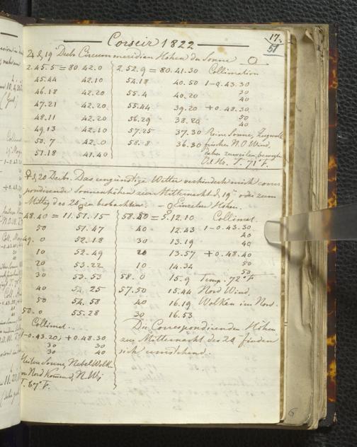 Ms. Ff. E. Rüppell I - Original Manuscript der auf meinen Reisen in Africa in den Jahren 1822 - 1827 gemachten astronomischen Beobachtungen. Sie sind sämmtlich theils in Zach's astronomischer Correspondenz, theils in dem Anhang zu meinen Reisen in Nubien pp. abgedruckt