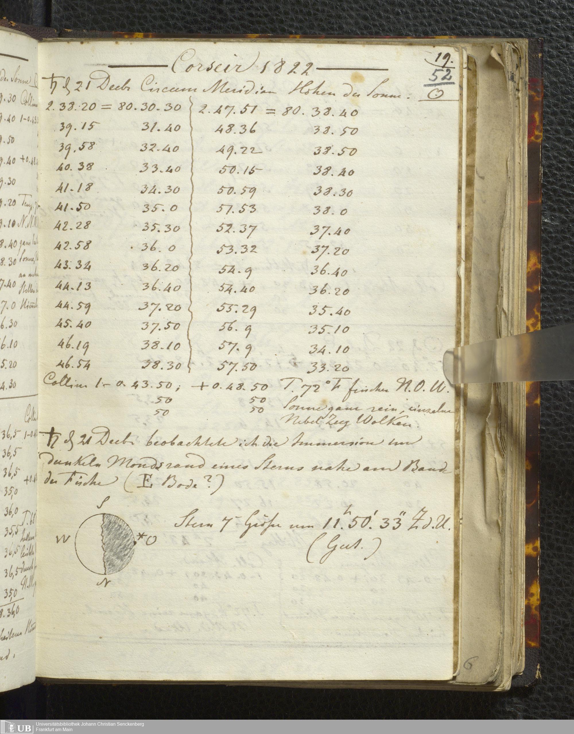 Ms. Ff. E. Rüppell I - Original Manuscript der auf meinen Reisen in Africa in den Jahren 1822 - 1827 gemachten astronomischen Beobachtungen. Sie sind sämmtlich theils in Zach's astronomischer Correspondenz, theils in dem Anhang zu meinen Reisen in Nubien pp. abgedruckt