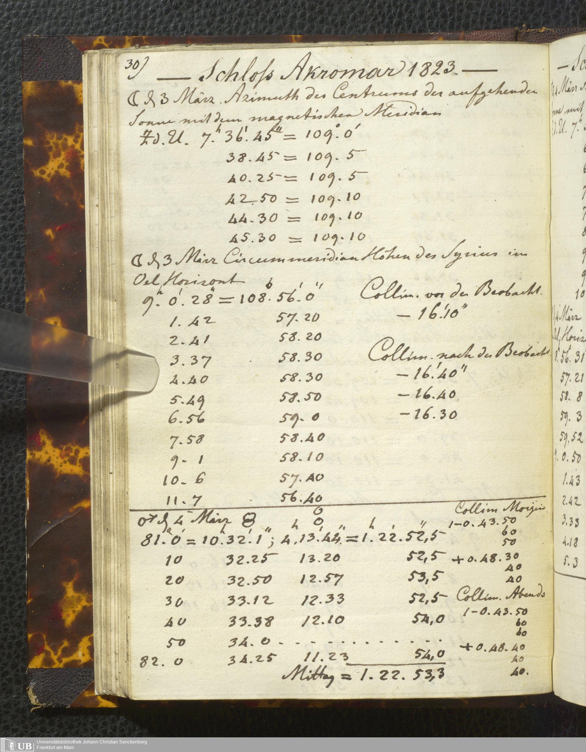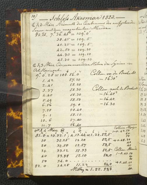 Ms. Ff. E. Rüppell I - Original Manuscript der auf meinen Reisen in Africa in den Jahren 1822 - 1827 gemachten astronomischen Beobachtungen. Sie sind sämmtlich theils in Zach's astronomischer Correspondenz, theils in dem Anhang zu meinen Reisen in Nubien pp. abgedruckt