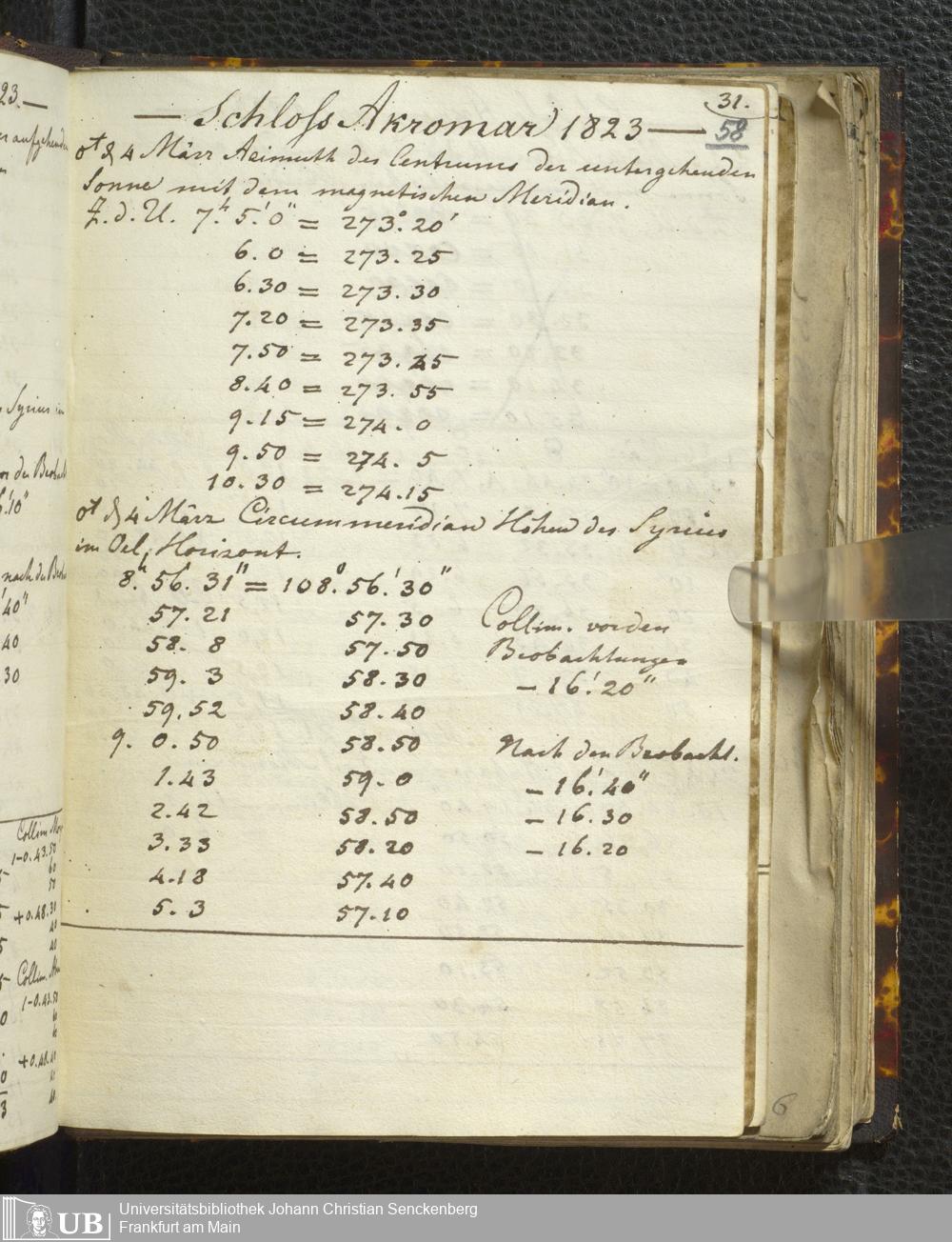 Ms. Ff. E. Rüppell I - Original Manuscript der auf meinen Reisen in Africa in den Jahren 1822 - 1827 gemachten astronomischen Beobachtungen. Sie sind sämmtlich theils in Zach's astronomischer Correspondenz, theils in dem Anhang zu meinen Reisen in Nubien pp. abgedruckt