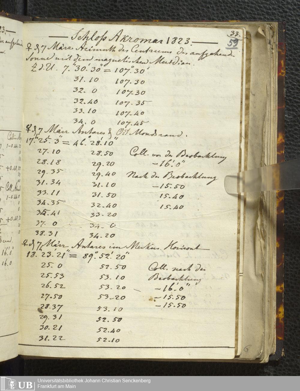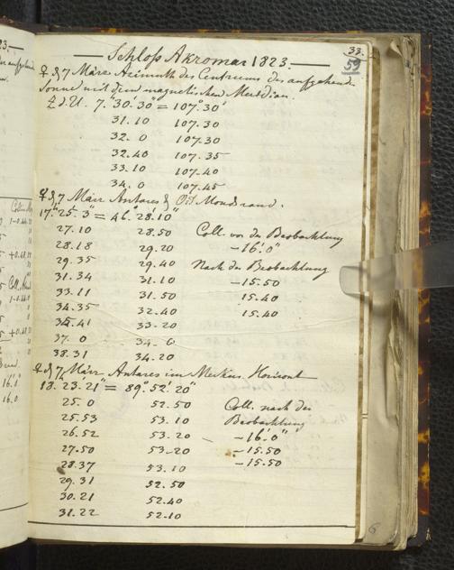 Ms. Ff. E. Rüppell I - Original Manuscript der auf meinen Reisen in Africa in den Jahren 1822 - 1827 gemachten astronomischen Beobachtungen. Sie sind sämmtlich theils in Zach's astronomischer Correspondenz, theils in dem Anhang zu meinen Reisen in Nubien pp. abgedruckt
