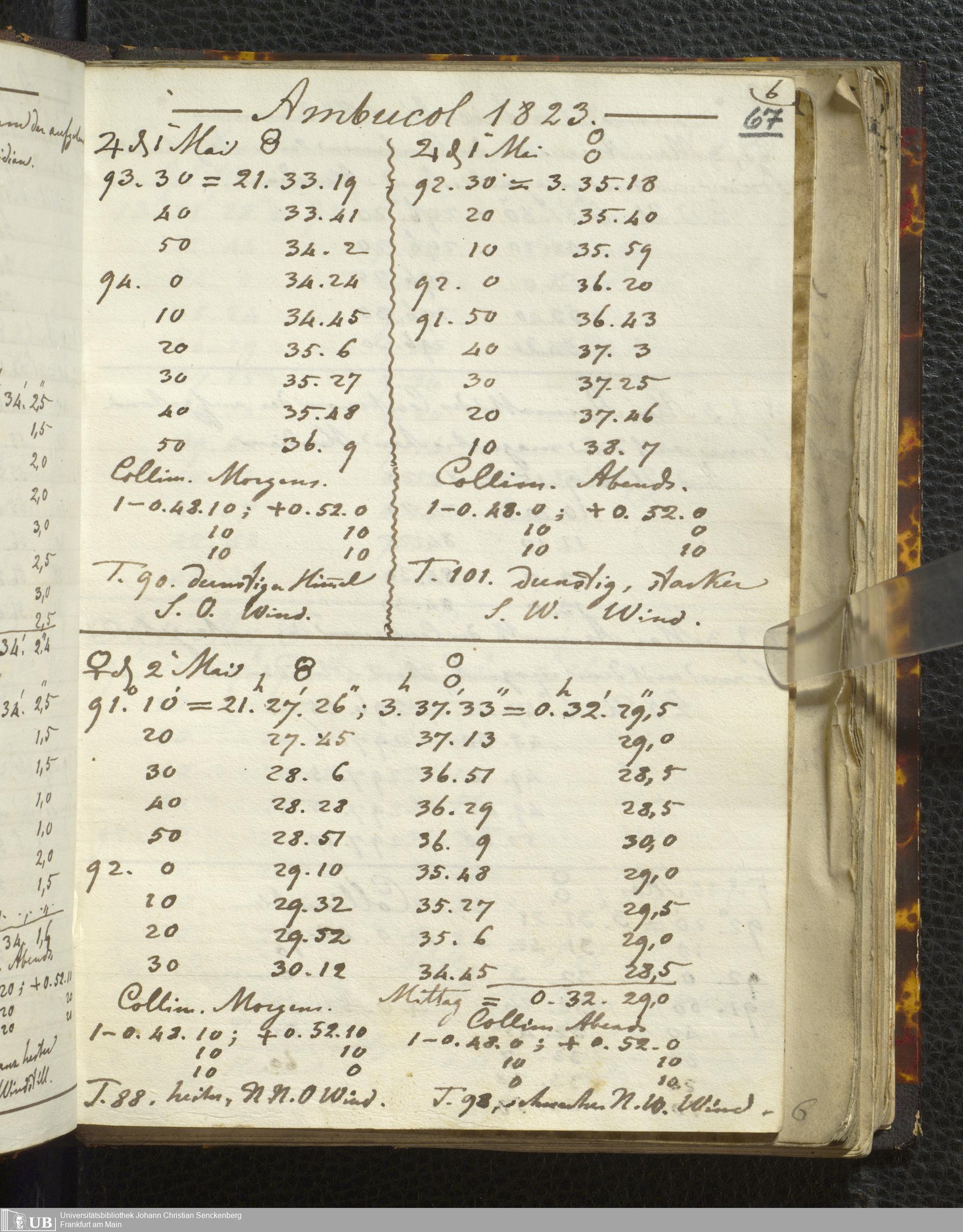 Ms. Ff. E. Rüppell I - Original Manuscript der auf meinen Reisen in Africa in den Jahren 1822 - 1827 gemachten astronomischen Beobachtungen. Sie sind sämmtlich theils in Zach's astronomischer Correspondenz, theils in dem Anhang zu meinen Reisen in Nubien pp. abgedruckt